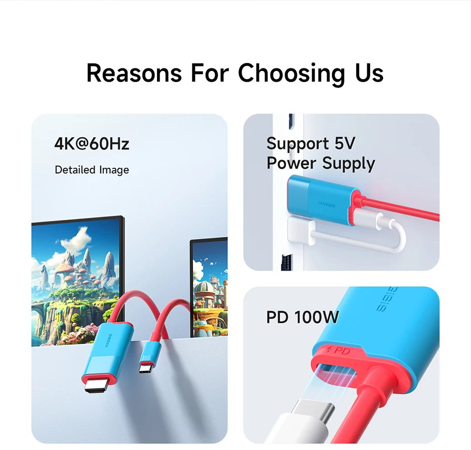 Alta resolución:La base Hagibis admite una resolución de vídeo de hasta 4K (3840*2160P/60HZ) y es compatible con la mayoría de los televisores de alta definición, monitores, proyectores y otros dispositivos con puerto compatible con HDMI.No se necesita ningún controlador adicional.NOTA: Debido a que Nintendo Switch solo admite salida 1080P, puede ser de hasta 1080P