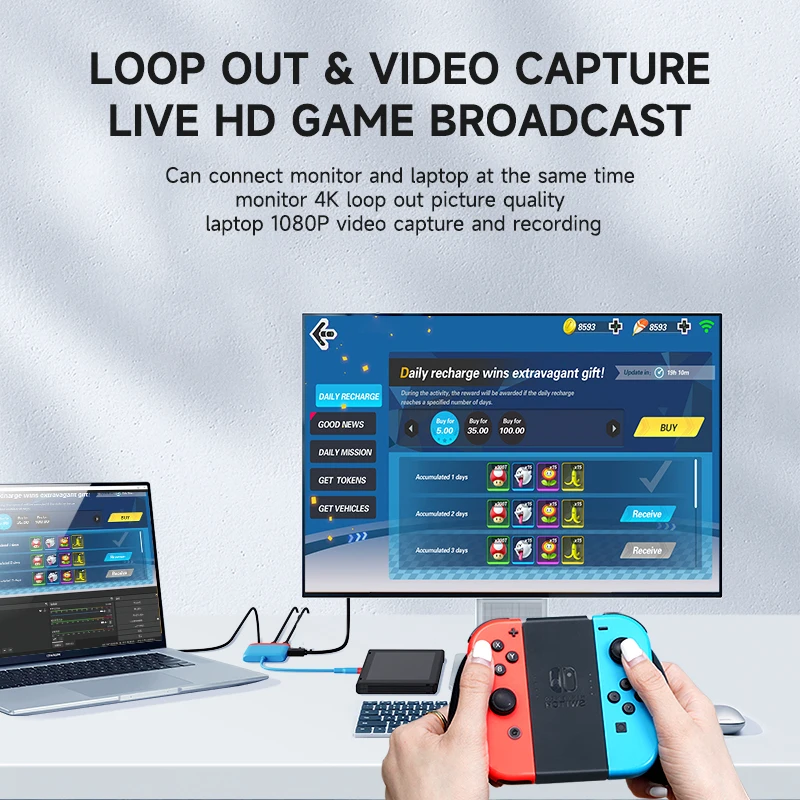 Multifunción y multipuerto:Con 4K HDMI, tarjeta de captura de vídeo 1080P, USB 3.0, puerto de carga de suministro de energía de 100 W, los cuatro puertos se pueden ampliar al mismo tiempo para satisfacer sus diversas necesidades. La velocidad de transmisión de USB3.0 puede ser de hasta 5 Gbps.