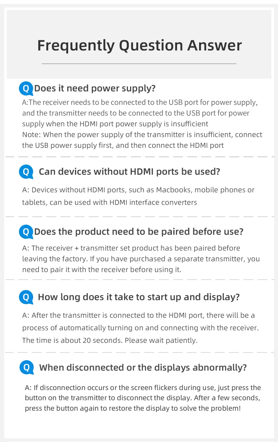 【No WiFi Required】Una TV en cualquier lugar dentro de 50 metros de la fuente con incluyen receptor y transmisor Simplemente conecte el transmisor a un set top caja de juego de consola ¡U otro HDMI compatible con el dispositivo de salida y conecte el receptor a cualquier pantalla HD!