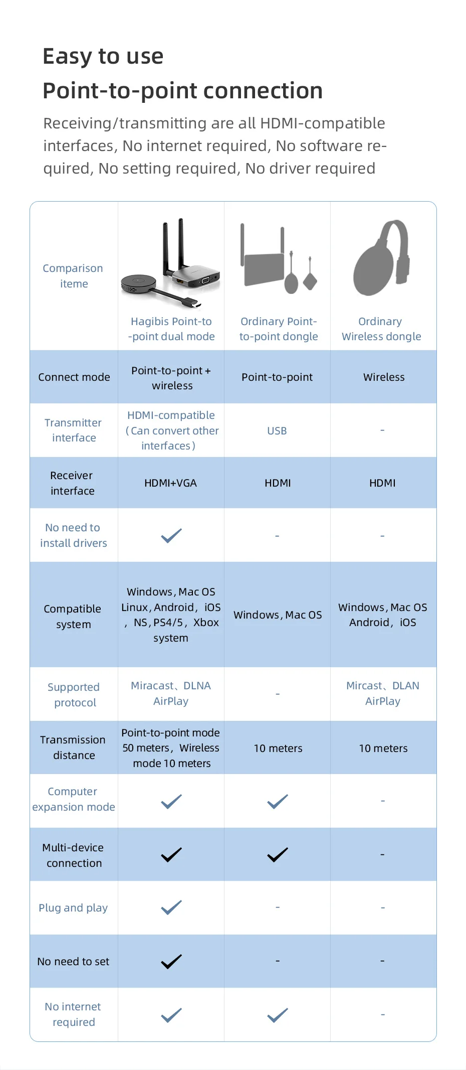 Comprar Hagibis-transmisor y receptor de vídeo inalámbrico compatible con HDMI, adaptador de pantalla, Dongle para TV, Monitor, proyector, interruptor, PC