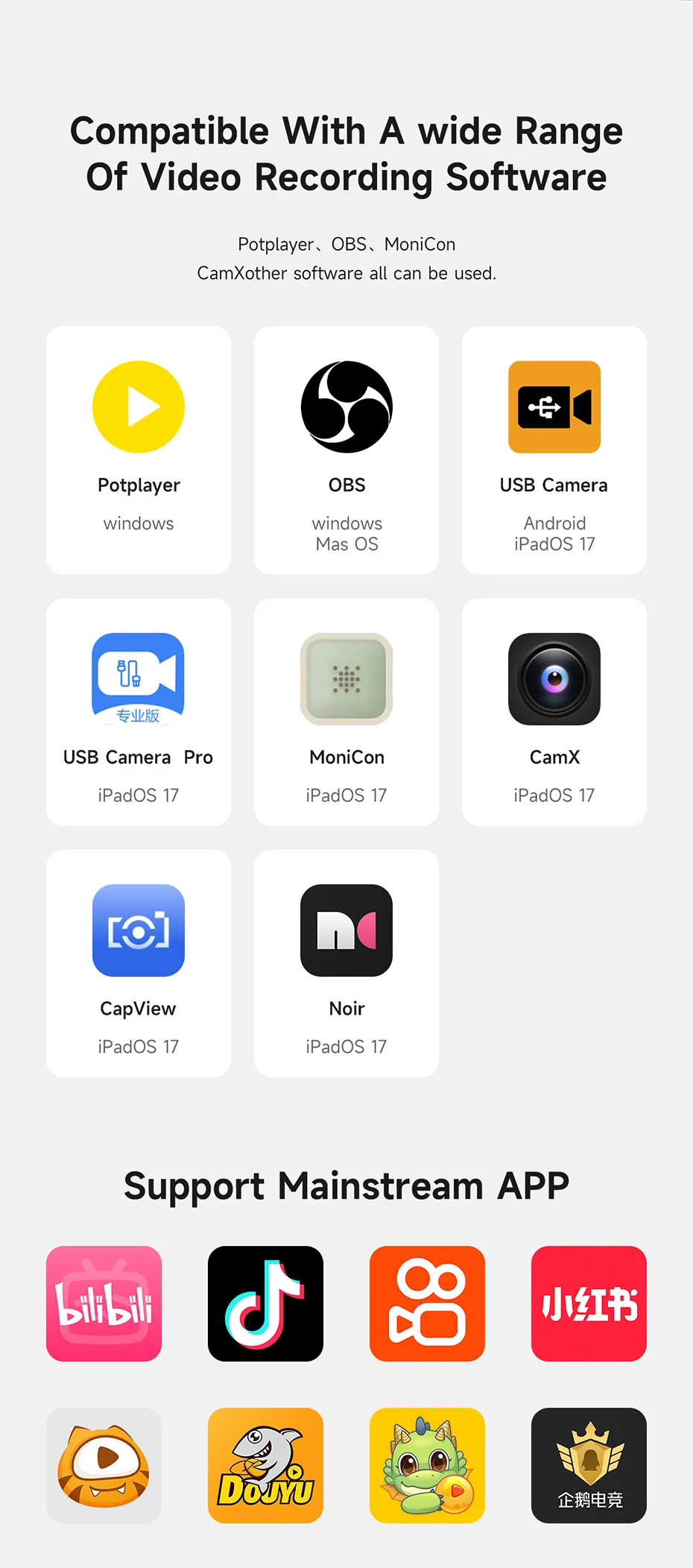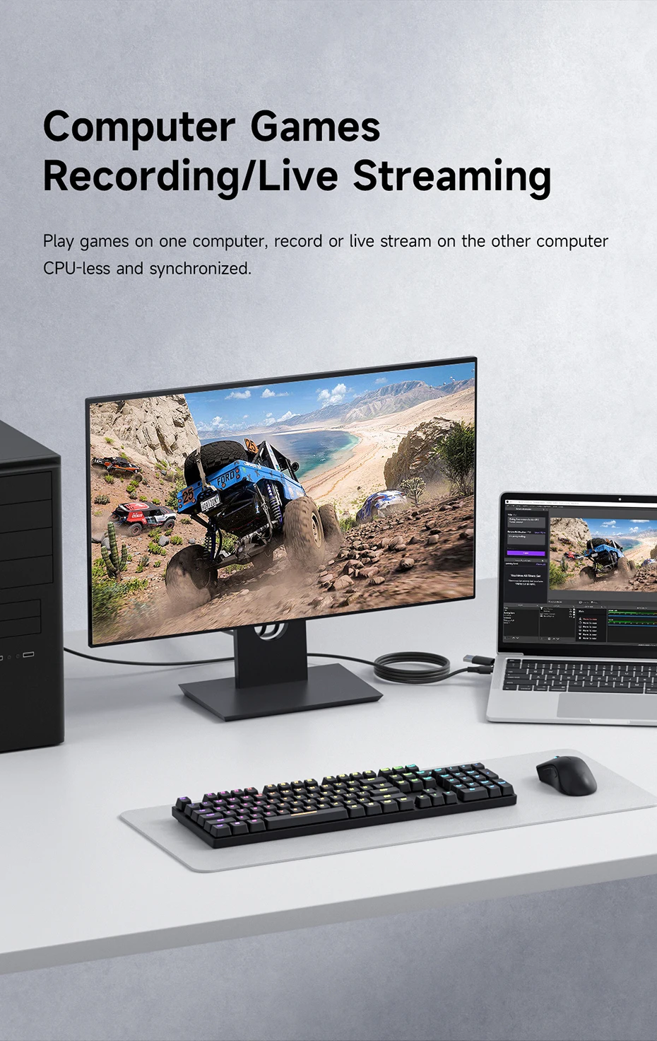 【Plug & Play】:Como tarjeta de captura de vídeo portátil compatible con HDMI 4K sin necesidad de controlador, se puede utilizar sin controladores ni fuente de alimentación externa.para que puedas utilizar las funciones integradas del software actual para obtener una experiencia perfecta.Y la tarjeta de captura es de tamaño pequeño y fácil de transportar, no hay problema para transmisiones en vivo en interiores y exteriores.
