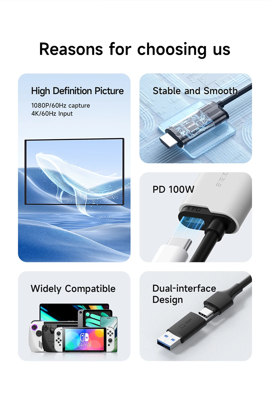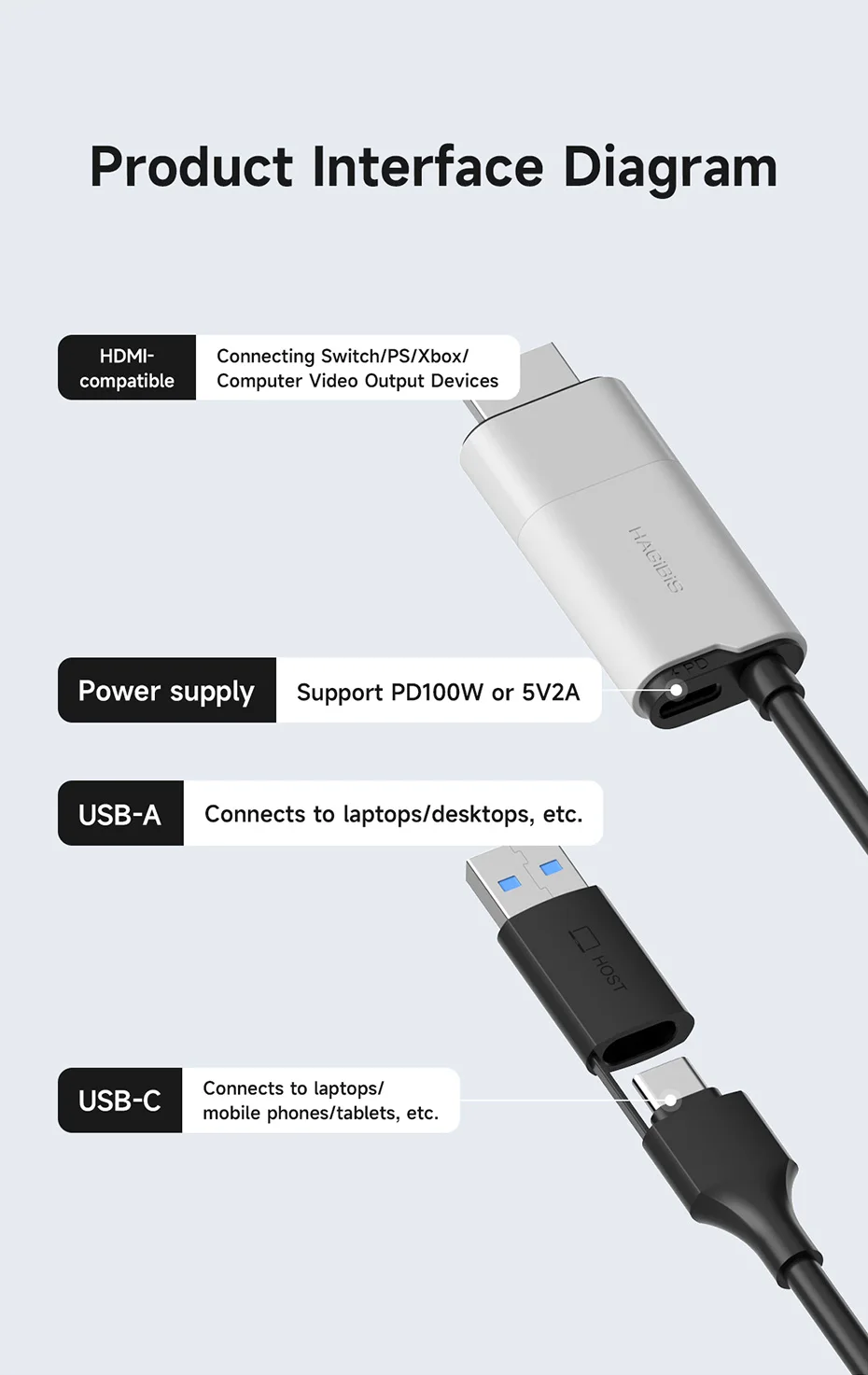 【Vero grabación de vídeo USB3.0 1080P 60Hz】:Las tarjetas de captura de video Hagibis tienen una entrada de alta definición de hasta 4K@60Hz y una resolución máxima de salida de 1920×[email protected] grabación de alta calidad de 1080P 60 fps y vaporización en vivo. La tarjeta de captura de audio y vídeo es muy adecuada para juegos en vivo, grabación, edición y transferencia de juegos en alta resolución de 1080p a 60 fps en OBS, AMCap, Xsplit, VCL y más.