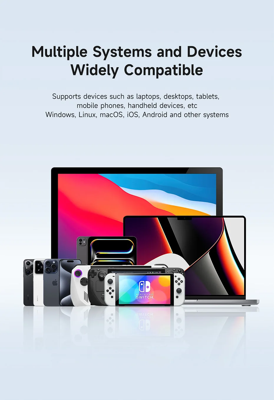 Ampliamente compatible:Admite dispositivos como computadoras portátiles, de escritorio, tabletas, teléfonos móviles, dispositivos portátiles, etc., Windows, Linux, macOS, iOS, Android y otros sistemas