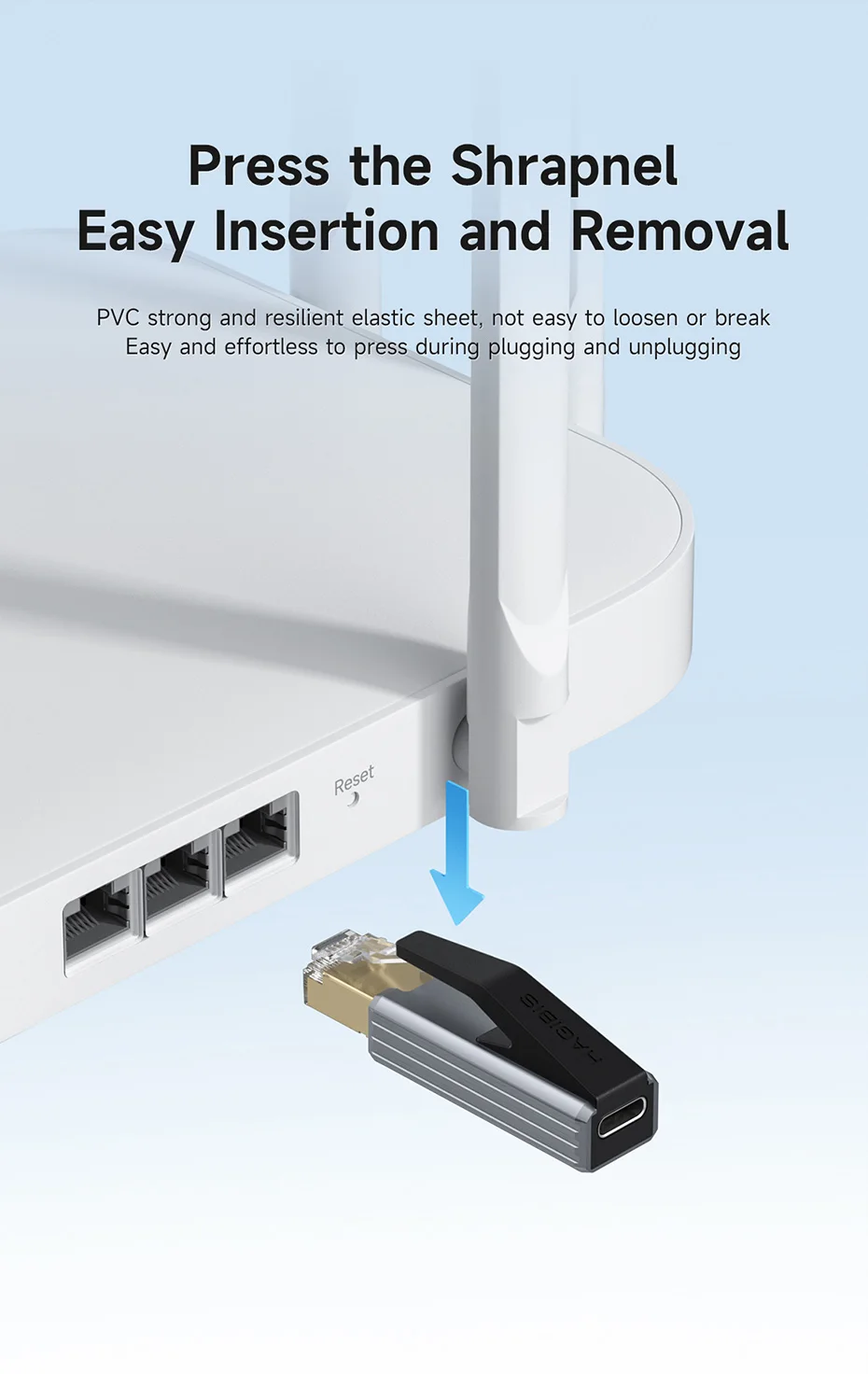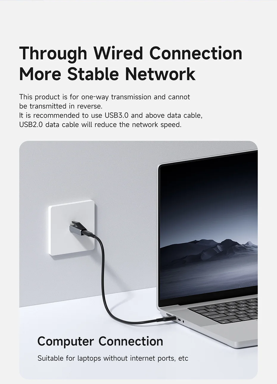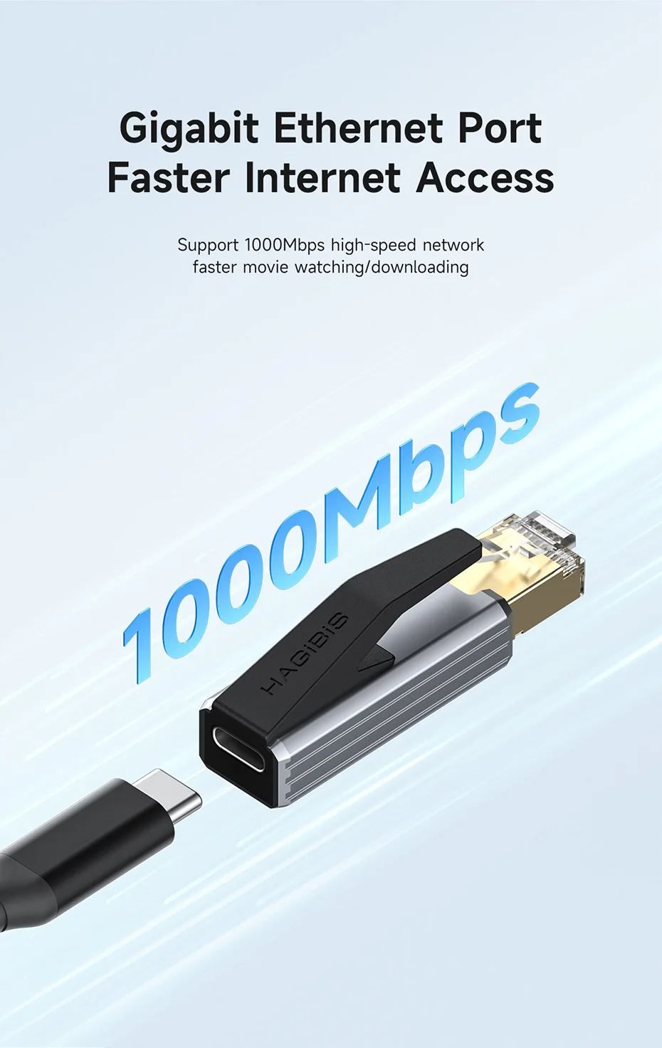 La mayoría de los adaptadores de Tipo-C a LAN tienen un adaptador grande cerca del dispositivo. Este producto tiene el adaptador en la base de la LAN, por lo que el área alrededor del dispositivo está limpia y ordenada. Lo probé en un dispositivo que no es compatible con USB 3.0, por lo que no alcanzó su máximo rendimiento, pero estoy satisfecho con los resultados de la prueba de velocidad.