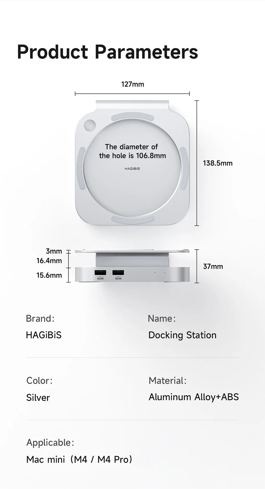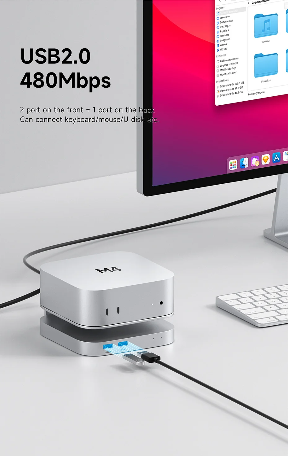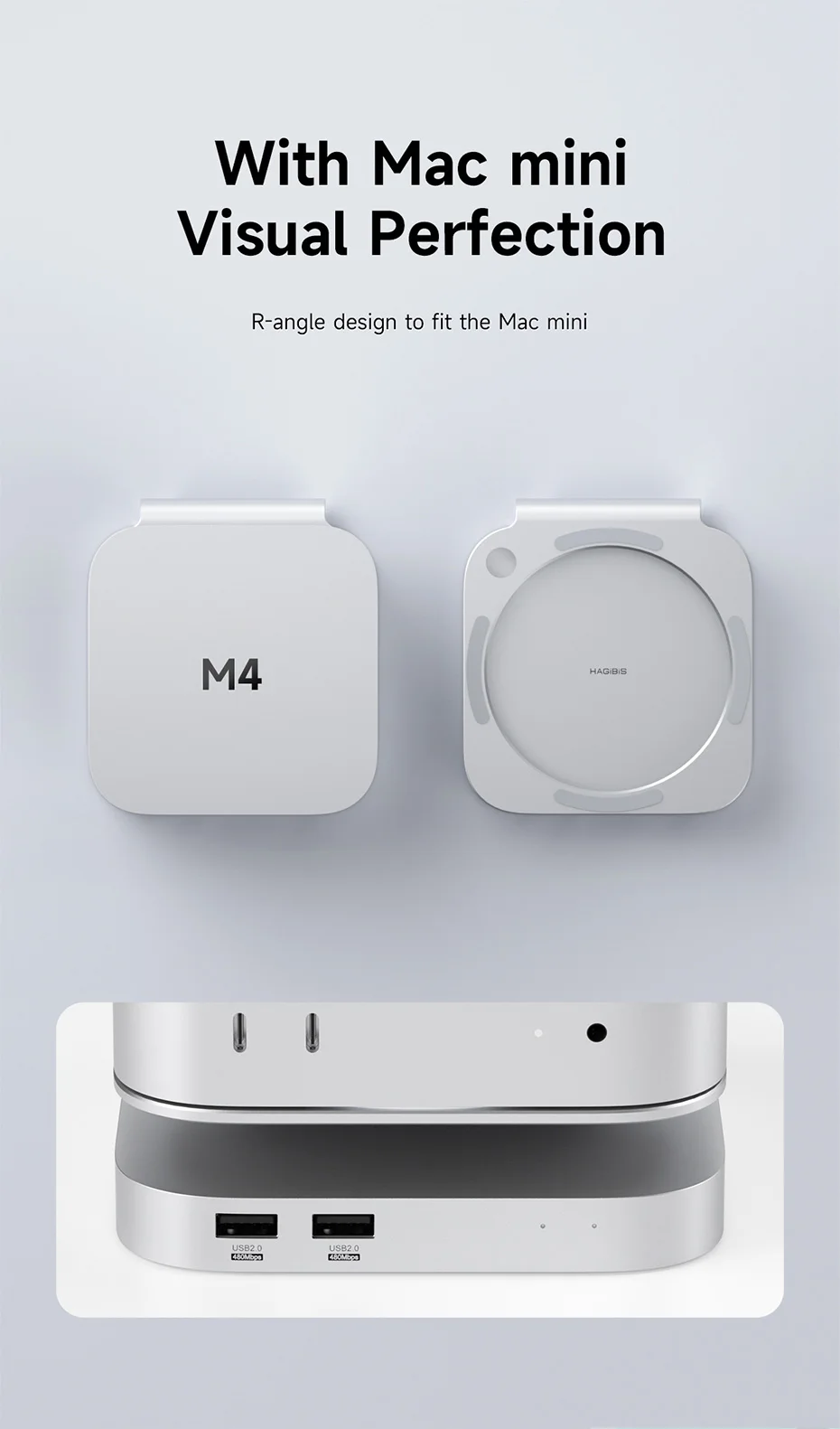 Buen socio para Apple 2024 Mac Mini M4/M4 Pro:Hagibis Hub tiene múltiples interfaces para satisfacer múltiples necesidades.Mismo tamaño, material de aleación, plug and play, ligero, sólido, disipación de calor rápida, más adecuado para su Mac Mini M4/M4 Pro 2024