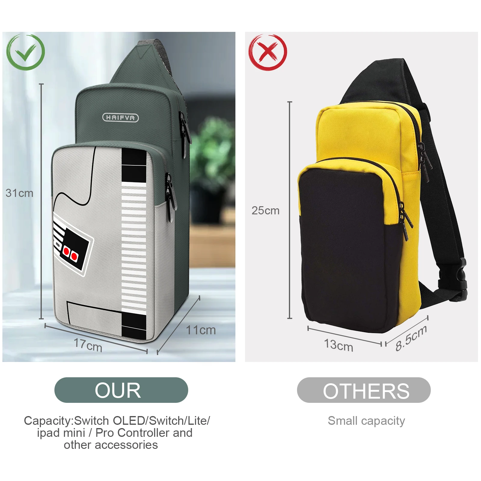 Comprar HAIFVA bolso cruzado para Nintendo Switch OLED NES, estuche de transporte, almacenamiento de hombro, bolsa SNES para accesorios de juego, bolsa protectora