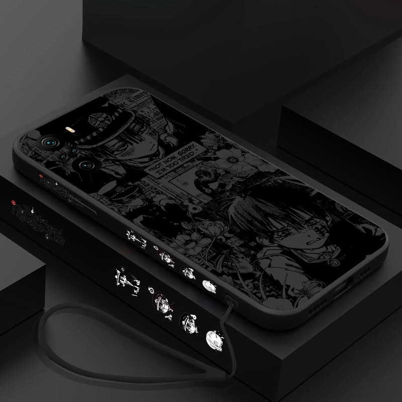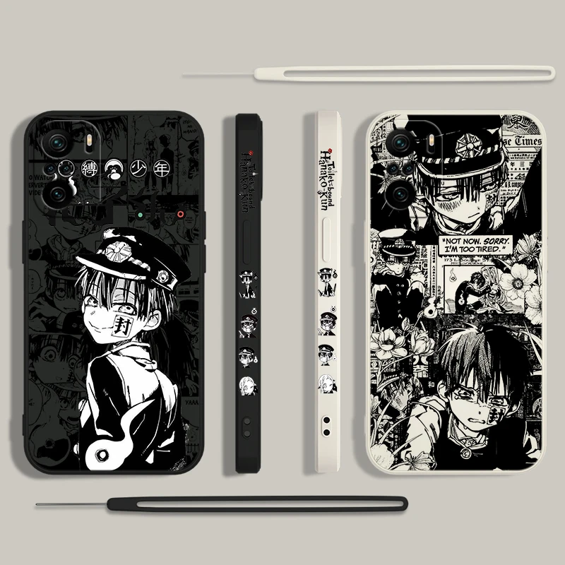 Hanako Kun-funda de teléfono con cuerda izquierda líquida para Xiaomi Redmi Note 13, 12, 12Pro, 11S, 11T, 10S, 10 Pro Plus, 5G