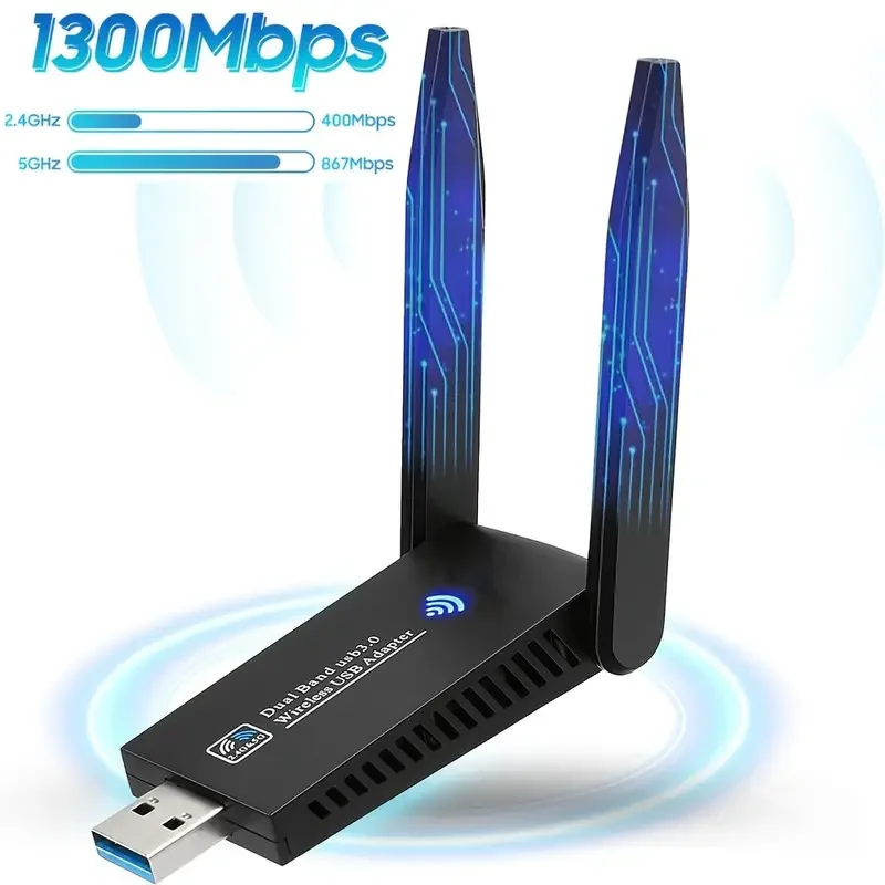 Comprar Hannord-adaptador WiFi USB3.0, 1300Mbps, banda Dual, 2,4G, 5Ghz, Dongle, receptor de red Ethernet inalámbrico, unidad gratuita para PC y portátil