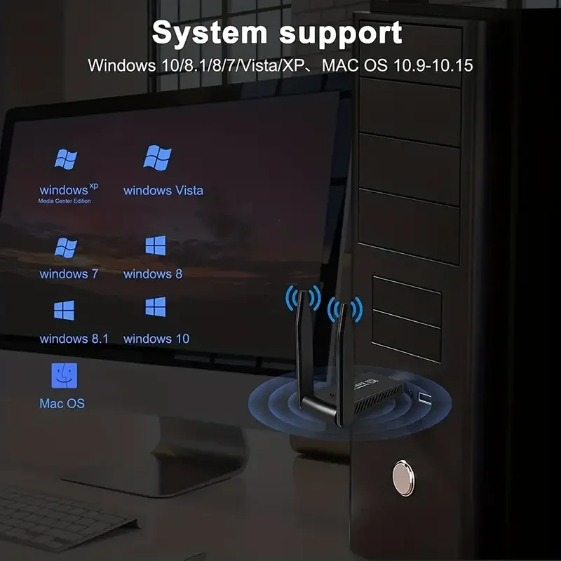 Las antenas duales de 2dBi de largo alcance y alta ganancia proporcionan una fuerte penetración y estabilidad, ayudándole a conectarse incluso en condiciones de señal más débiles.
