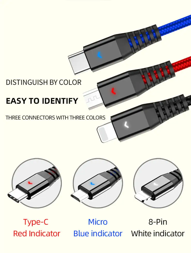 Nota: Este producto es un cable USB 3 en 1, por lo que este producto no se puede utilizar para la transmisión de datos y solo se utiliza para la carga.