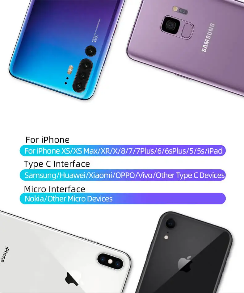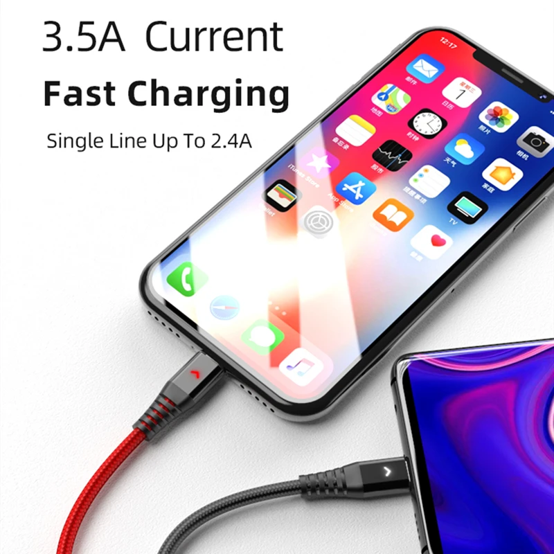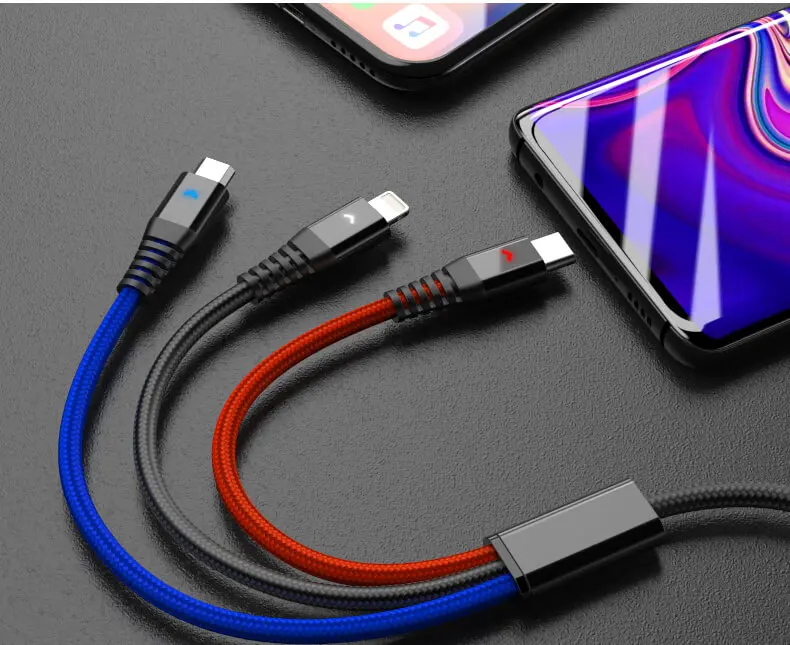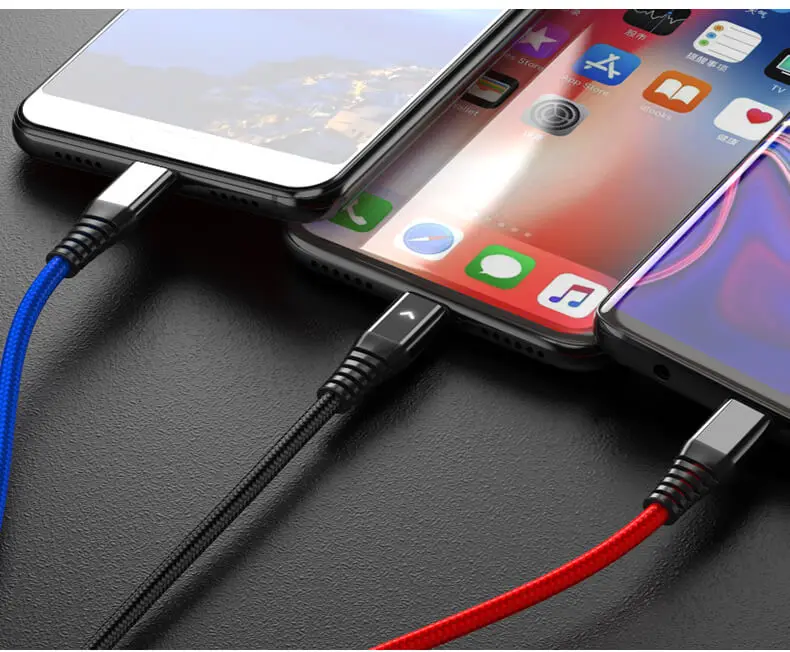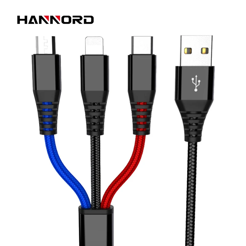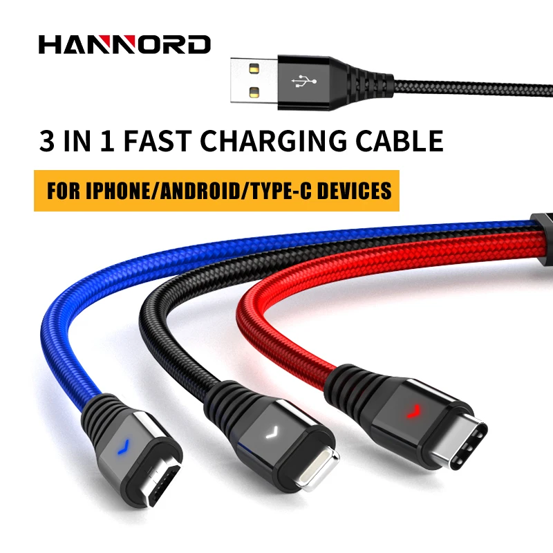 Hannord Cable USB 3 en 1 para iPhone XS Max XR X 8 7 6 5 para Xiaomi Samsung Android Teléfono móvil Micro USB Tipo C Cable de cargador