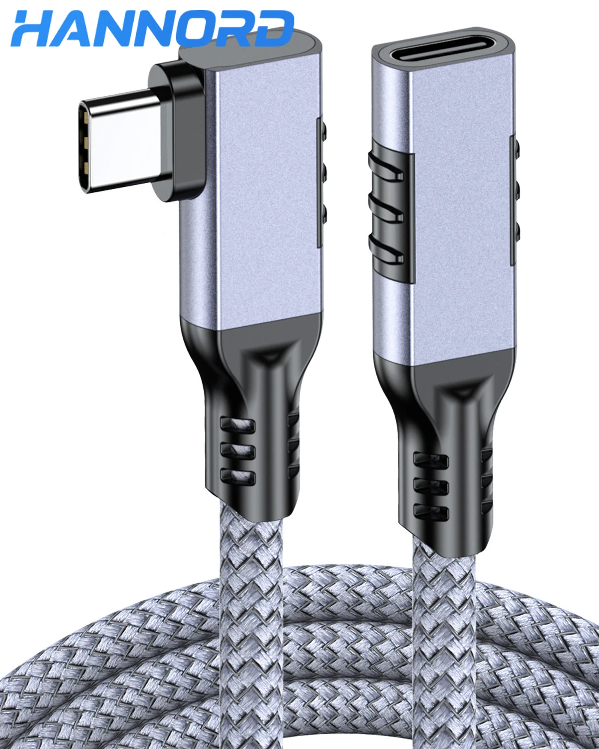 Hannord Cable de extensión tipo C con codo USB3.2 Datos Pantalla de 8K Espejo Cargador rápido de 240W con transmisión de 20G