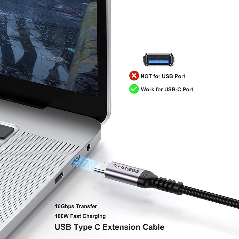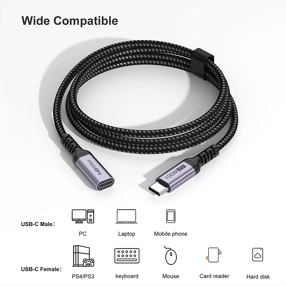 Comprar Hannord-Cable de extensión USB C 3,1, 100W, 5A, macho a hembra, Audio, vídeo, tipo C, Cable de transferencia, Cable De Carga Rápida para MacBook Pro