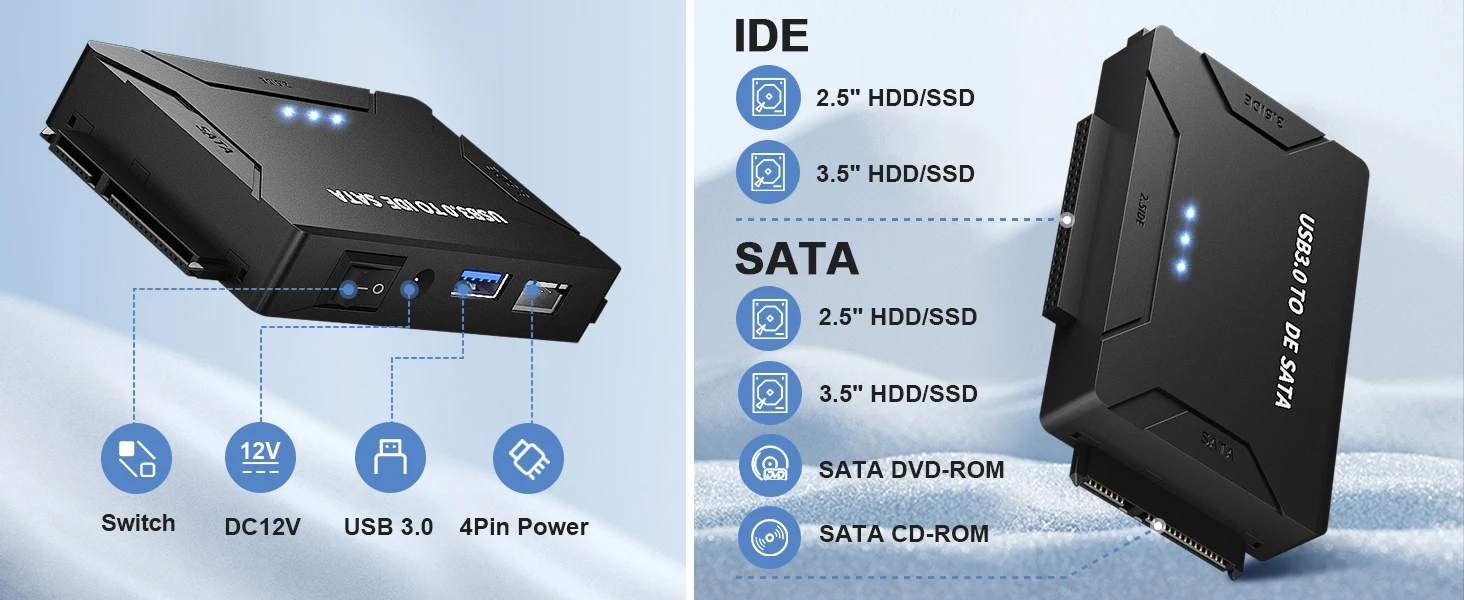 1: Adaptador de disco duro convertidor USB 3.0 a SATA/IDE