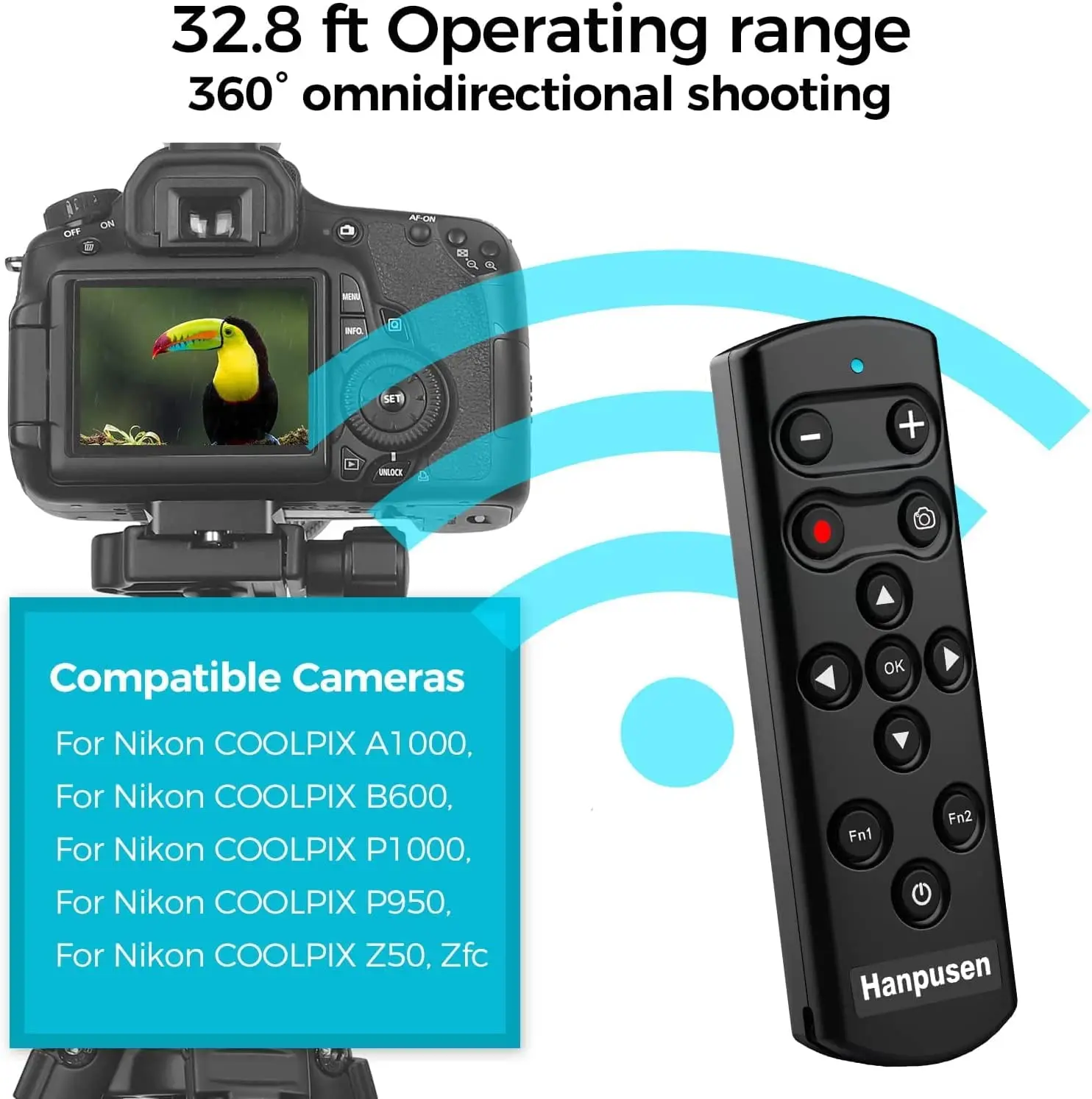 Controlador de control remoto inalámbrico Hanpusen que funciona para cámaras Nikon Z5 (V1.4), Z6 II (V1.4), Z7 II (V1.4), Z30, Z50, Zfc; Nikon Coolpix A1000, B600, P1000, P950 seleccionadas; Reemplaza completamente el control remoto Nikon ML-L7