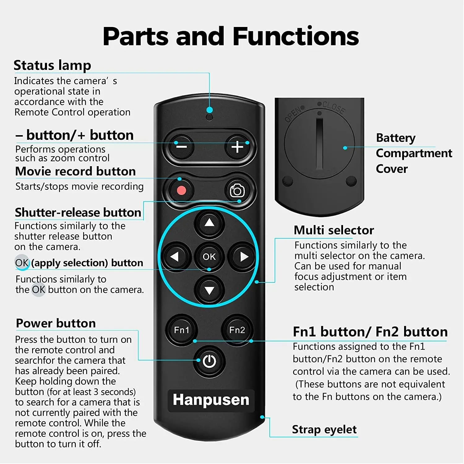 1. El control remoto inalámbrico HANPUSE ML-L7B reemplaza el control remoto Nikon ML-L7, es compatible con la tecnología Bluetooth de baja energía, que está especialmente diseñado para Nikon Z5 (V1 seleccionado.4), Z6 II (V1.4), Z7 II (V1.4), Z30, Z50, Z fc;Coolpix A1000, B600, P1000, P950