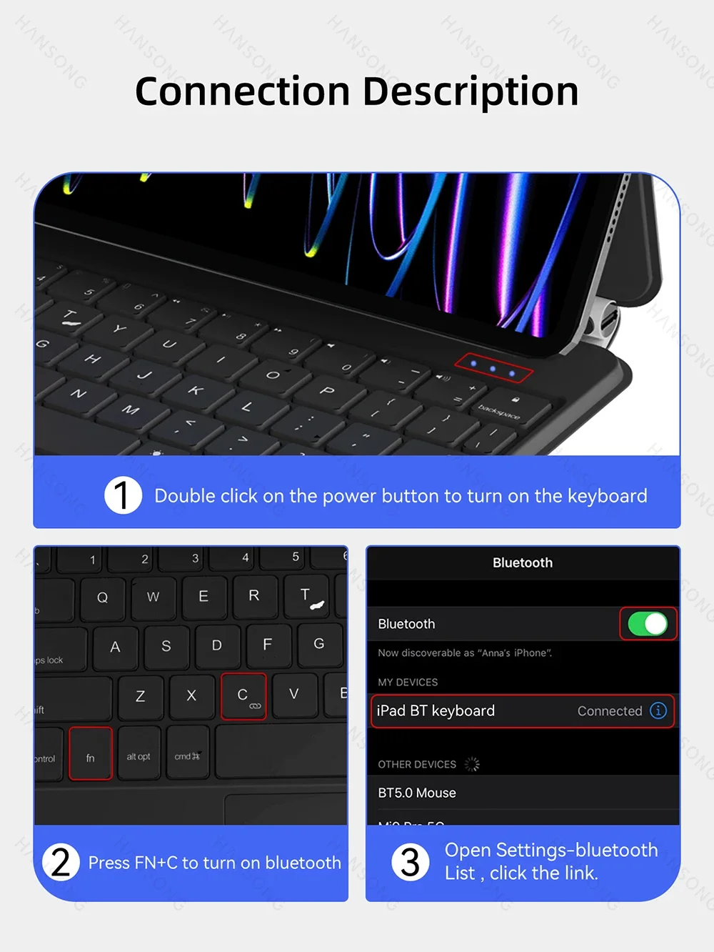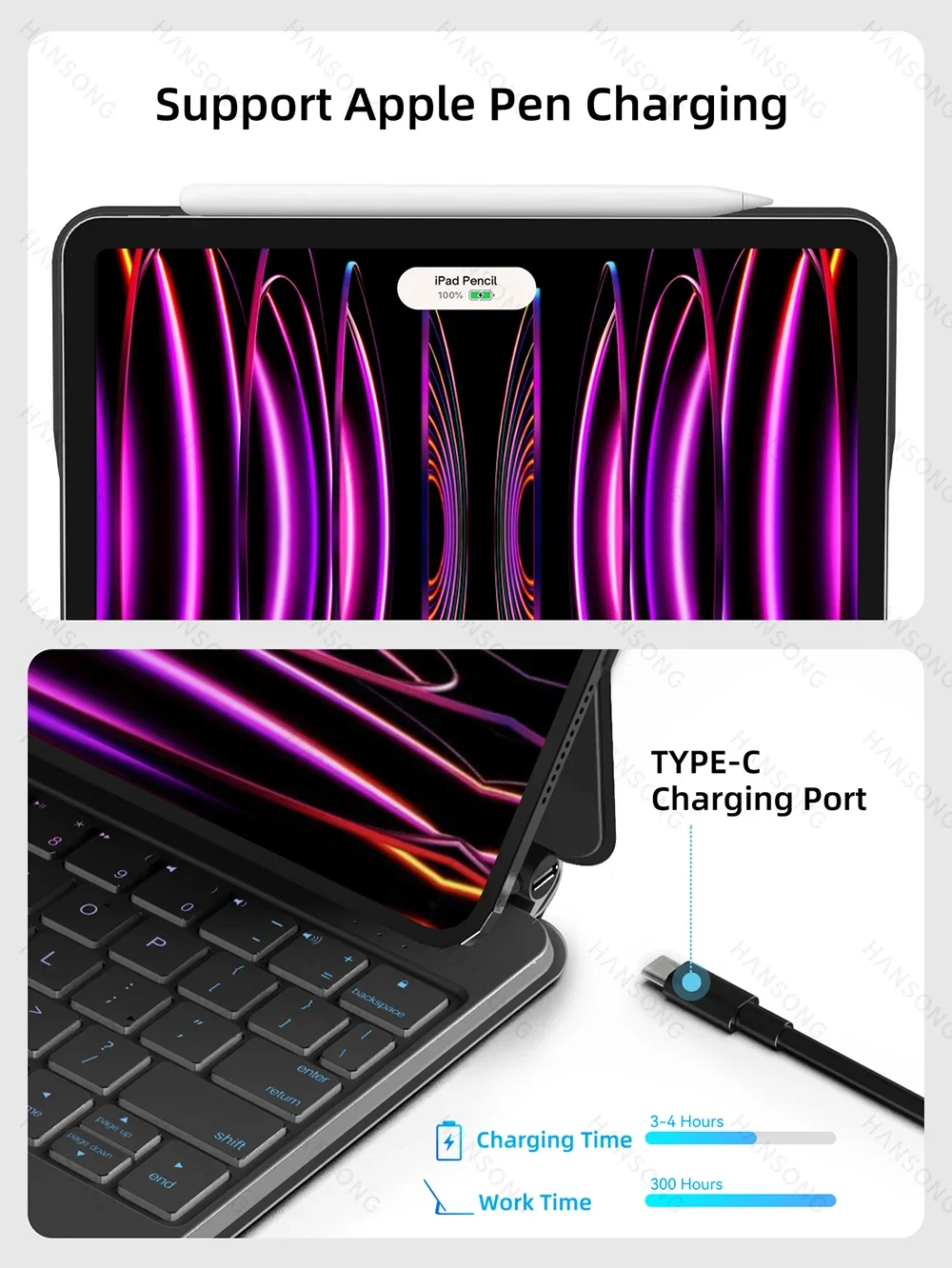 Comprar Hansong teclado mágico para iPad Air 11 13 M2 2024 Pro 11 13 M4 Air 6 para iPad Pro 11 12,9 10.a generación 10,9 6a 5a 4a funda