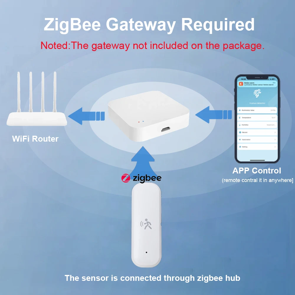 【Se requiere puente Zigbee/Hub Zigbee/Puerta de enlace Zigbee】 Los sensores deben usarse junto con Zigbee Bridge (no son compatibles con otras marcas de puertas de enlace); Sin esta puerta de enlace, nuestro producto no puede funcionar