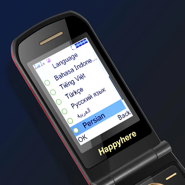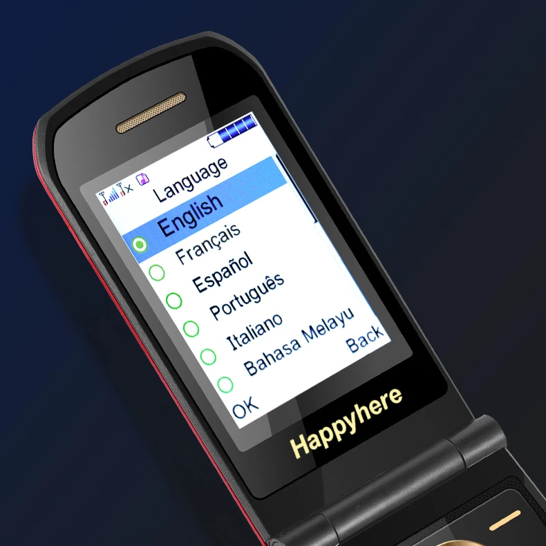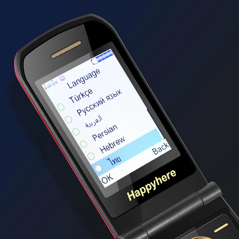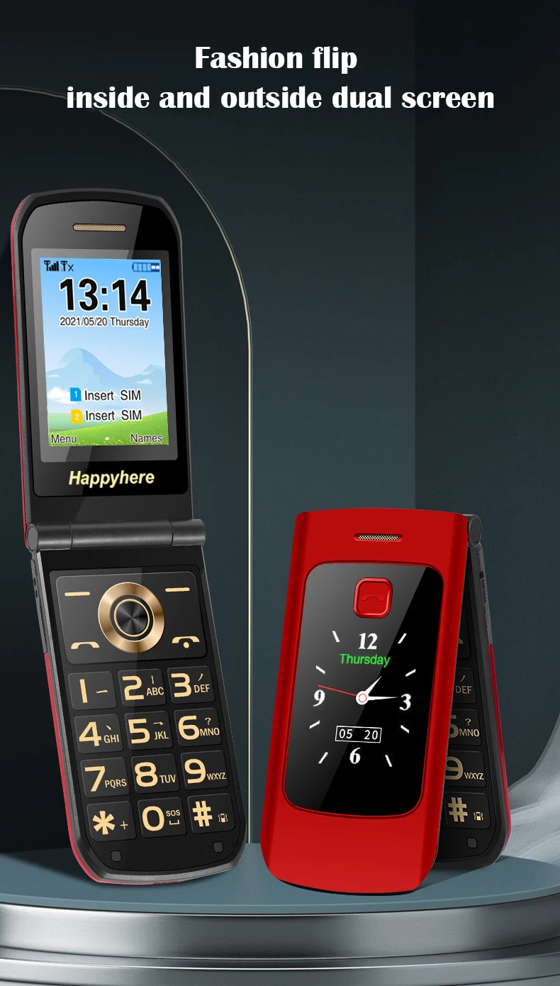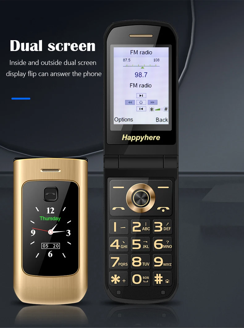 Comprar Happyhere-teléfono móvil F18 Flip, pantalla dual, dial de velocidad, SOS, grabadora de Radio, antorcha, MP3, clamshell, Envío Gratis