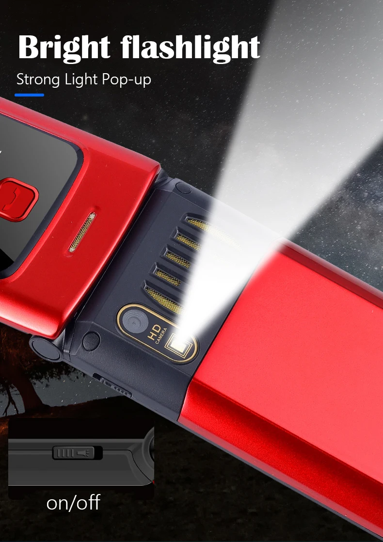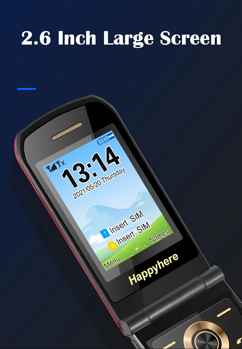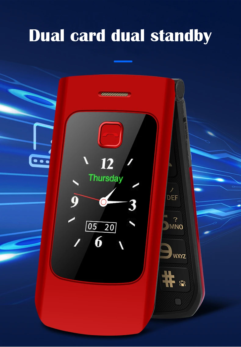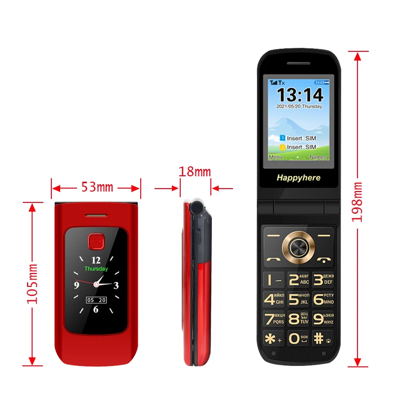 Comprar Happyhere-teléfono móvil F18 Flip, pantalla dual, dial de velocidad, SOS, grabadora de Radio, antorcha, MP3, clamshell, Envío Gratis