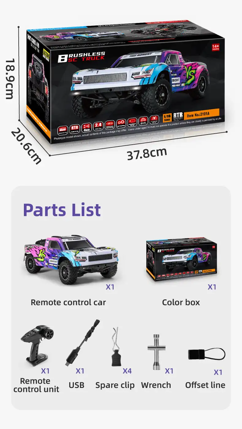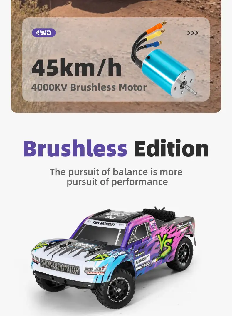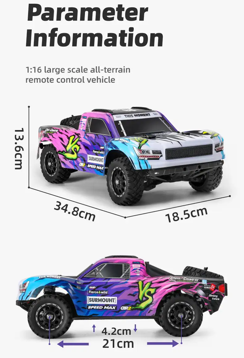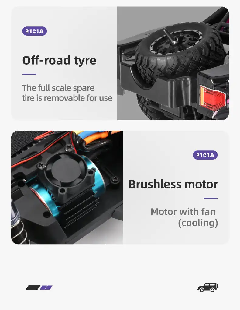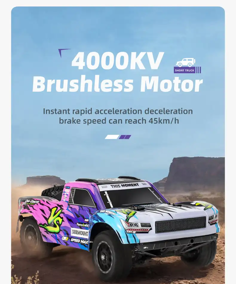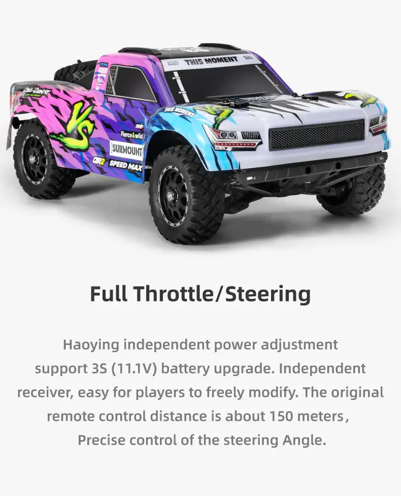 El camión de curso corto RC sin escobillas Haiboxing HBX 3101A escala 1:16 combina velocidad, durabilidad y funciones avanzadas para brindar una experiencia de conducción increíble.Equipado con un potente motor sin escobillas 2840 KV4000 y capaz de alcanzar velocidades de hasta 45 km/h (55-60 km/h en 3S), este camión está diseñado para carreras de alto rendimiento en cualquier terreno.