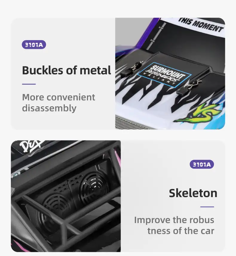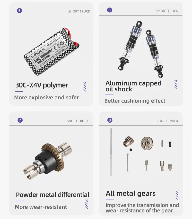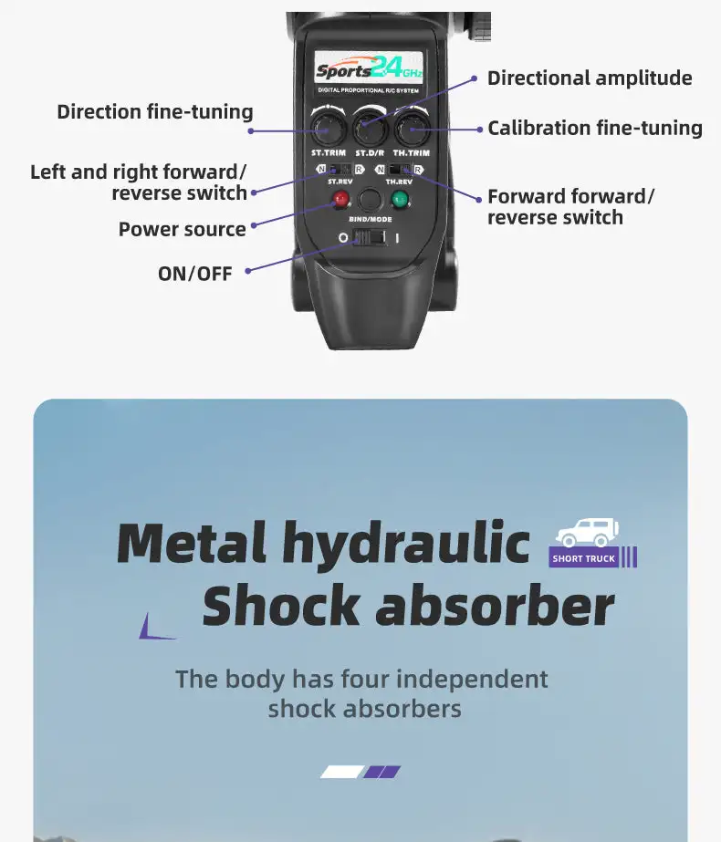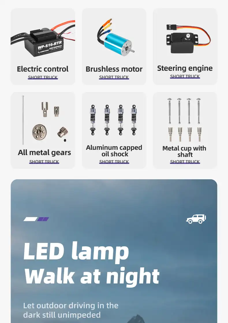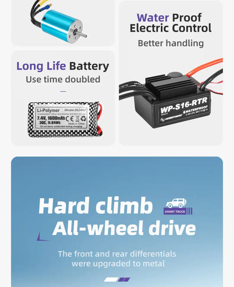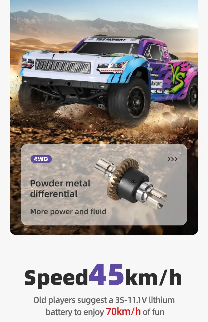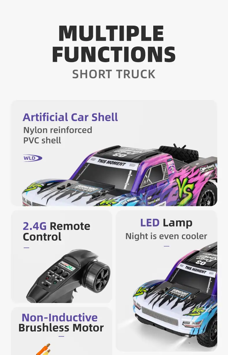 El camión de curso corto RC sin escobillas Haiboxing HBX 3101A escala 1:16 combina velocidad, durabilidad y funciones avanzadas para brindar una experiencia de conducción increíble.Equipado con un potente motor sin escobillas 2840 KV4000 y capaz de alcanzar velocidades de hasta 45 km/h (55-60 km/h en 3S), este camión está diseñado para carreras de alto rendimiento en cualquier terreno.