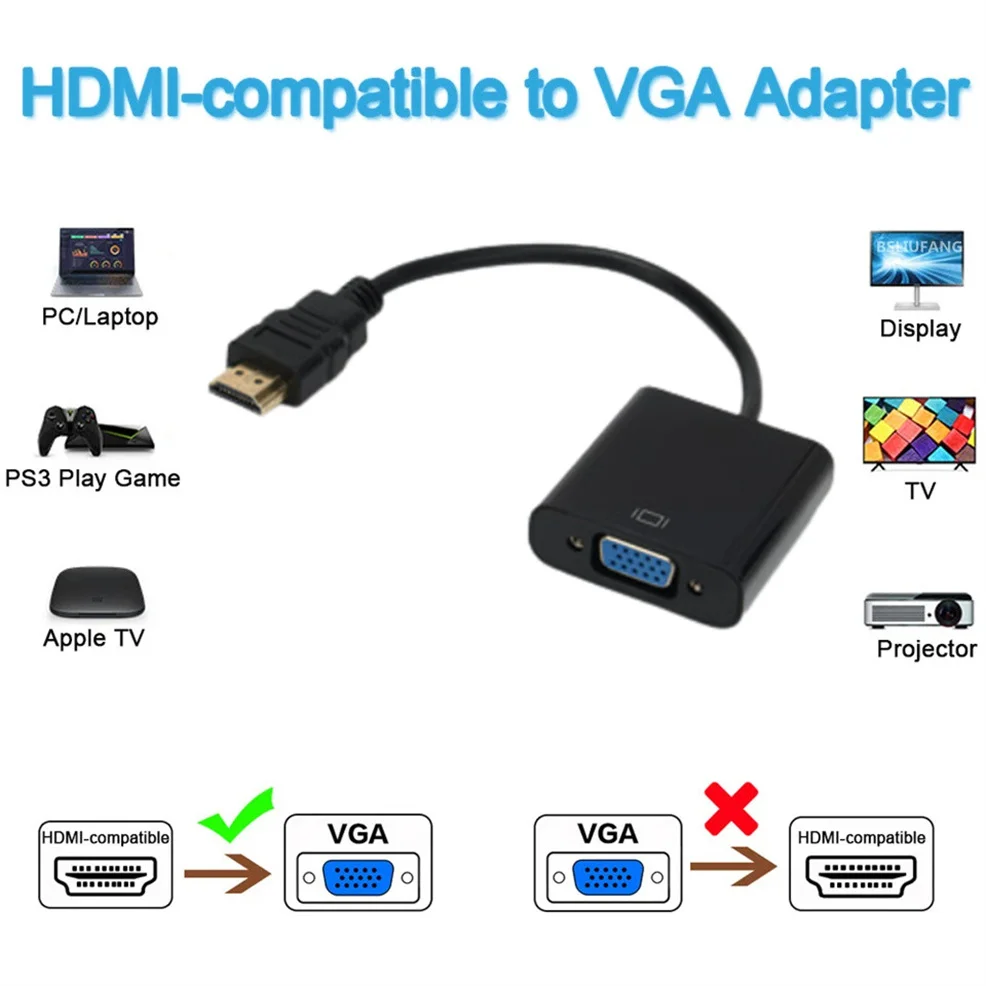 Convertidor de Cable HD 1080P HDMI a VGA con fuente de alimentación de Audio Adaptador convertidor HDMI macho a VGA hembra para tableta portátil PC TV