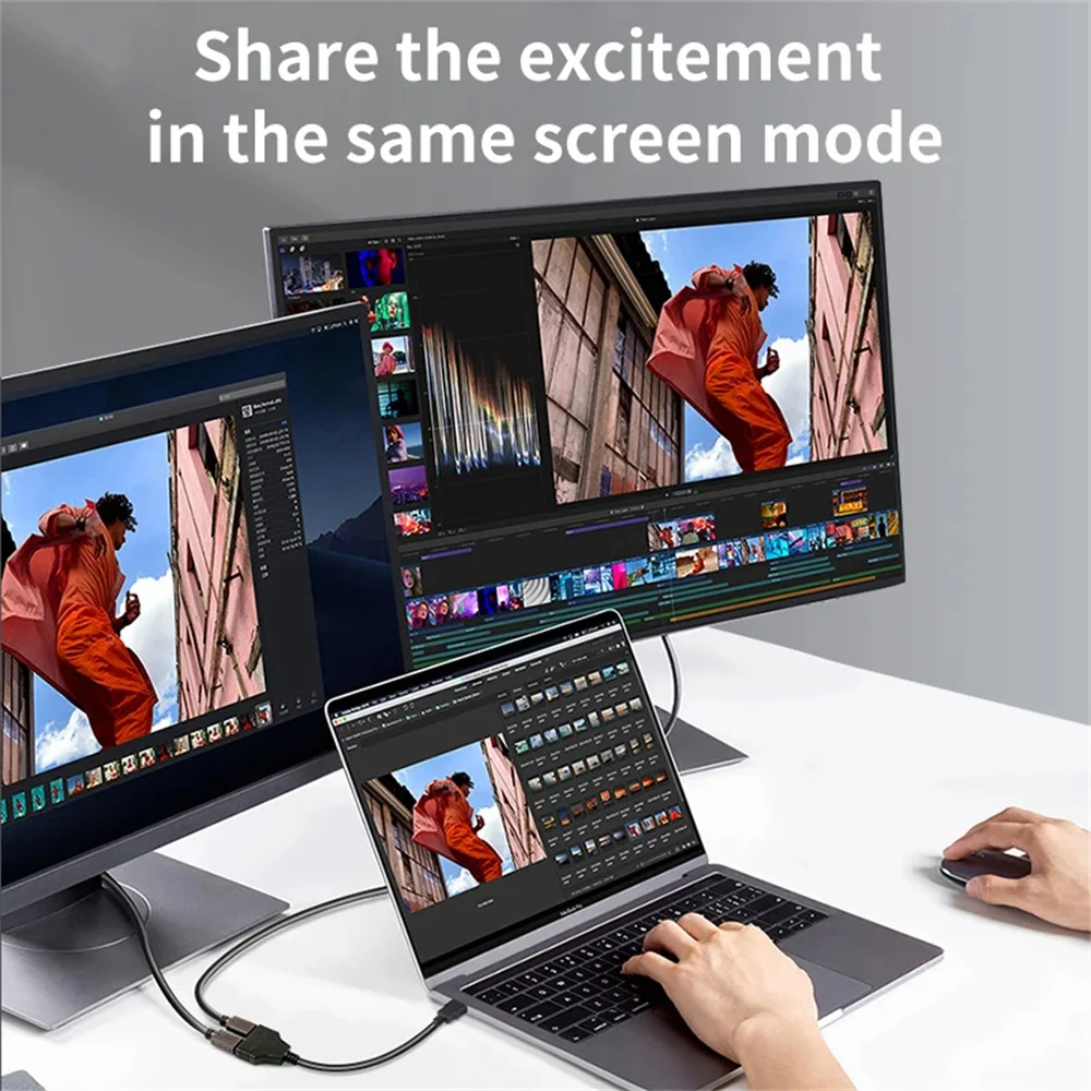 2.Salida dual: este cable divide una sola señal en dos salidas, lo que permite que dos dispositivos de salida visual reciban la misma señal.