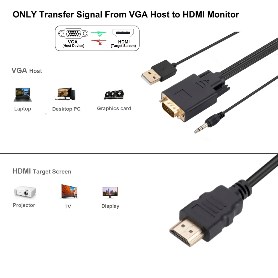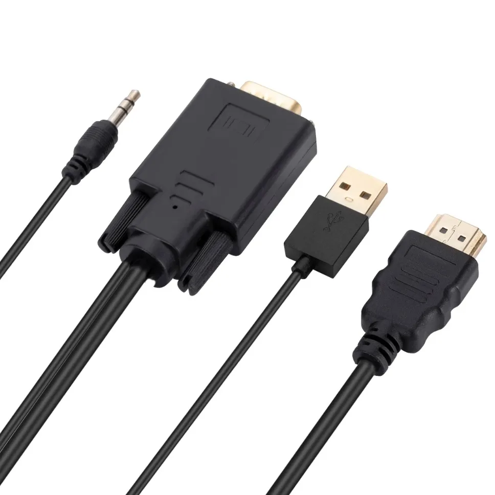 Comprar HD 1080P VGA a HDMI Cable 1,8 M VGA macho a HDMI convertidor macho con Audio USB adaptador de fuente de alimentación para PC portátil proyector