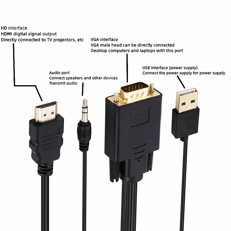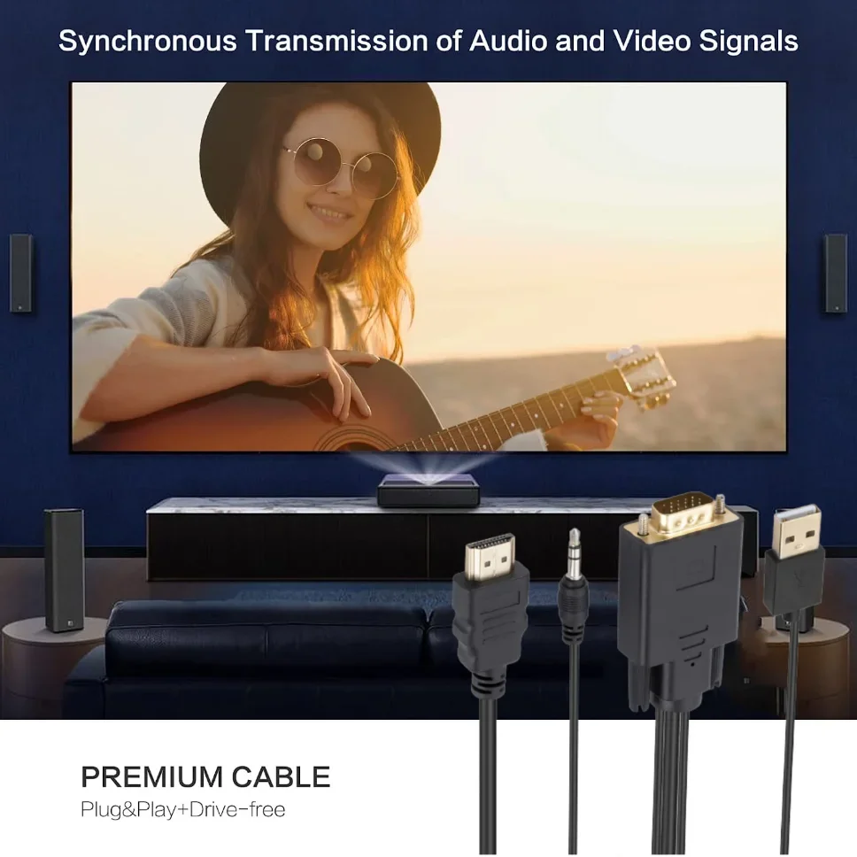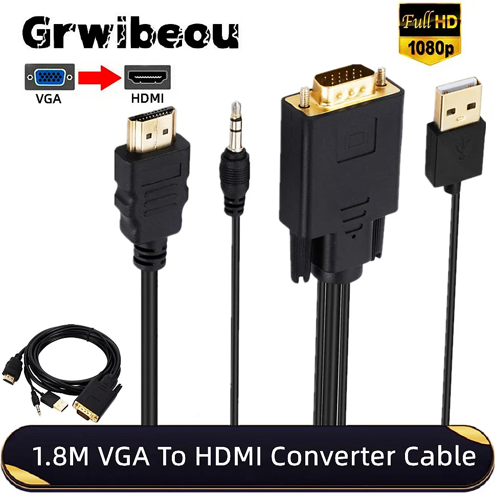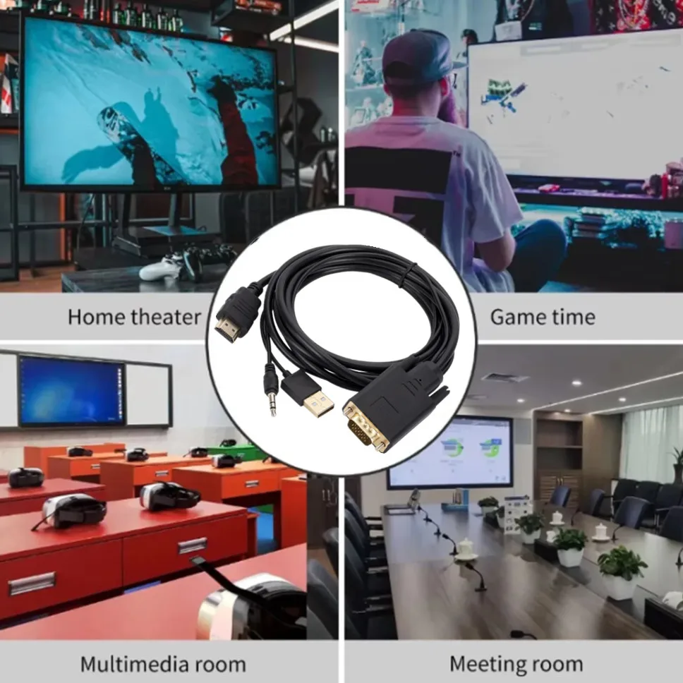 Comprar HD 1080P VGA a HDMI Cable 1,8 M VGA macho a HDMI convertidor macho con Audio USB adaptador de fuente de alimentación para PC portátil proyector