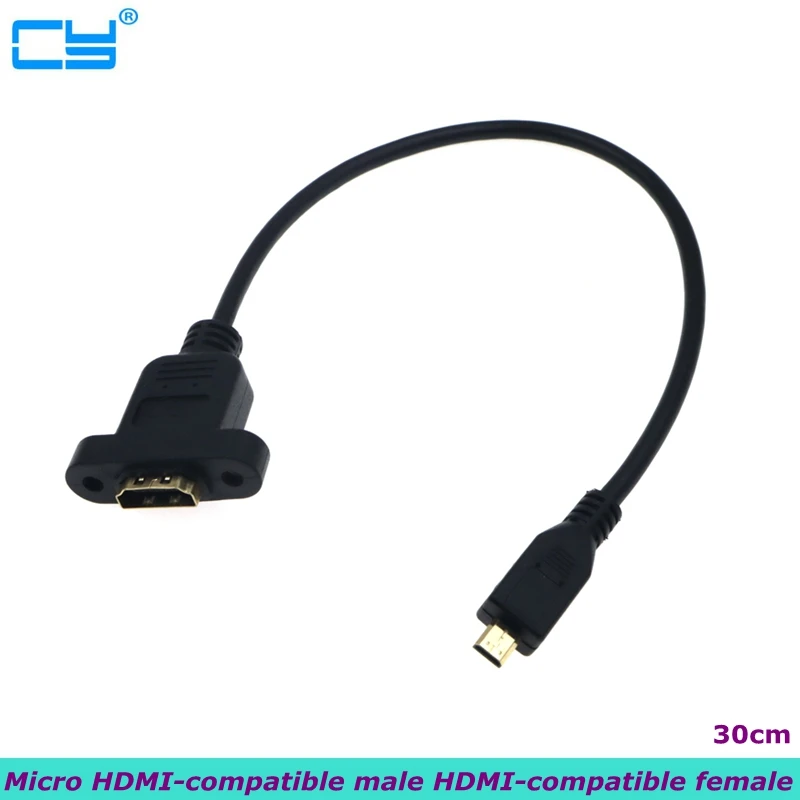 Comprar HD Micro HDMI compatible macho a HDMI hembra con orificios para tornillos a Cable de Panel seguro A hembra a D macho 30CM