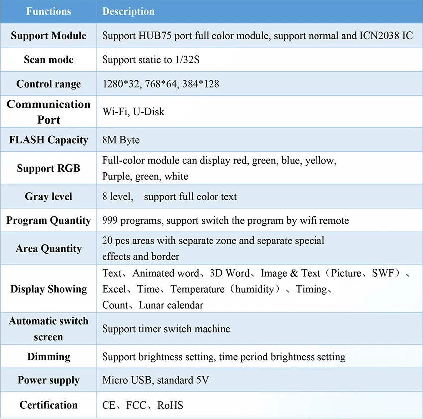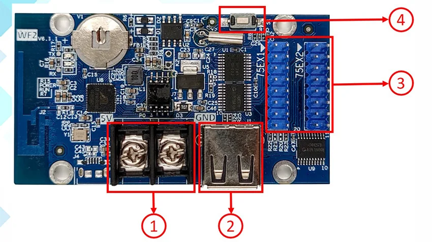 Tarjeta de control. Es compatible con Wi-Fi y disco U para actualizar programas. Es adecuado para la puerta dintel led