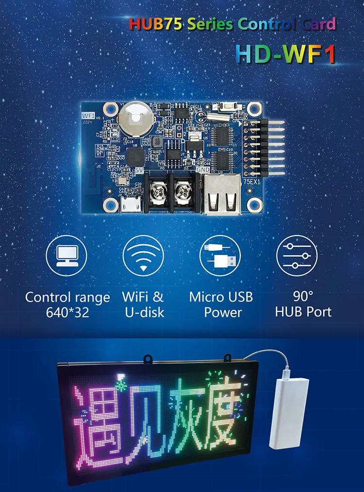 HD-WF2(abbr. WF2) equipado con 2 líneas de Puerto HUB75E. Es una serie a todo color de
