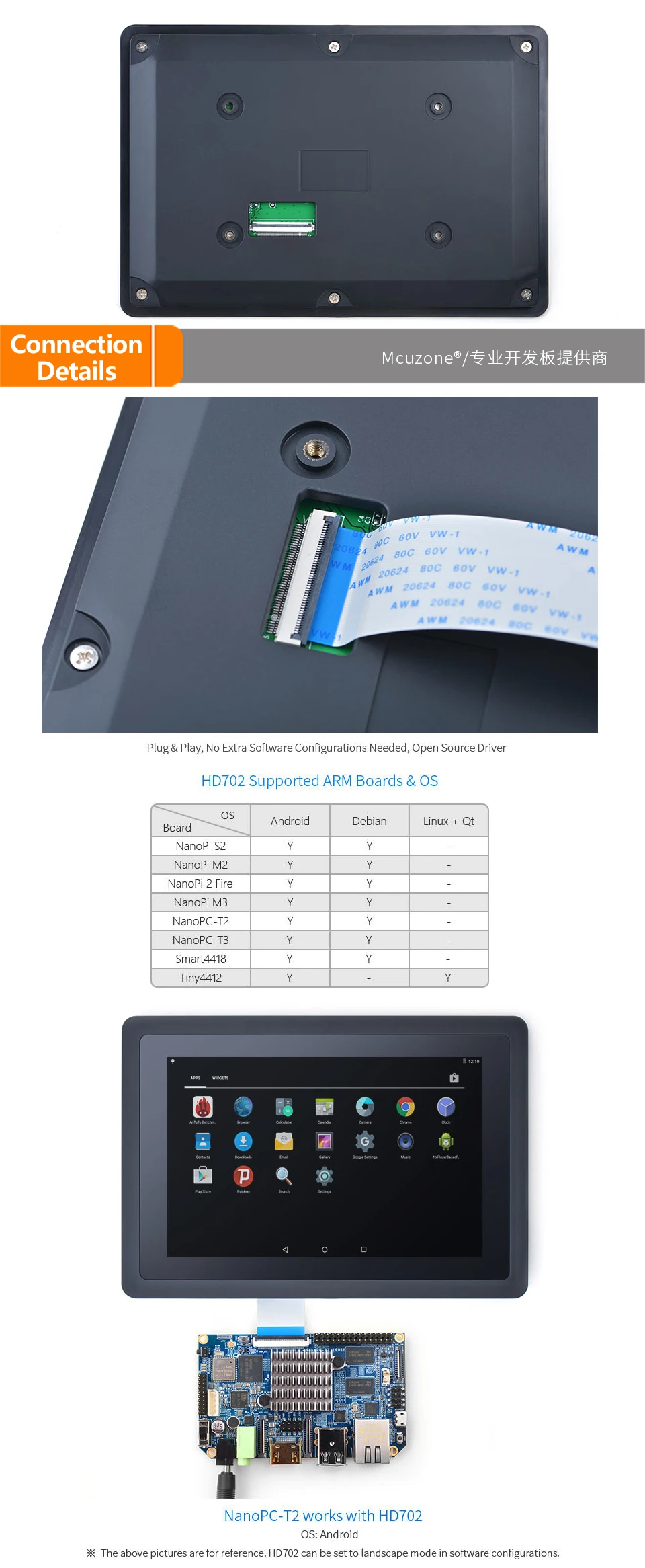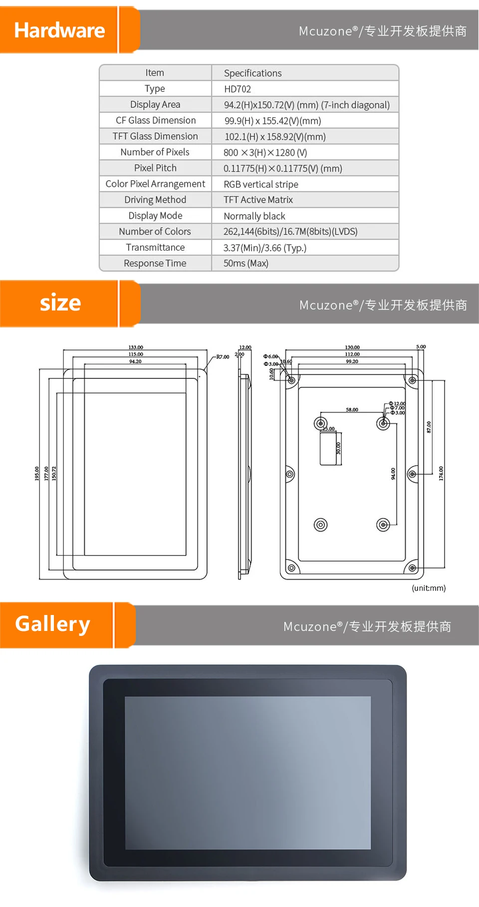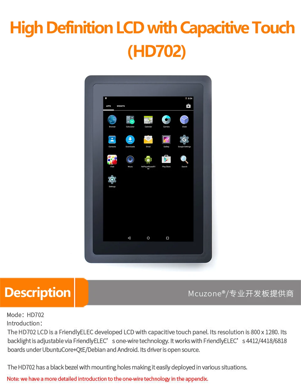 HD702, pantalla táctil capacitiva LCD de 7 pulgadas 800x1280, compatible con T2/T3/smart4418/6818/Tiny4412