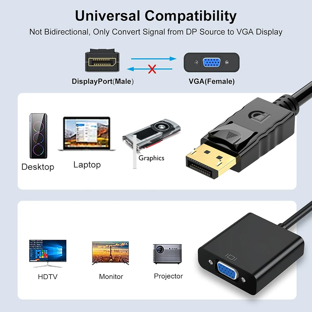 Comprar HDmatters-Cable DisplayPort a VGA, adaptador de Monitor, 1080P, DP a VGA, para Nvida, AMD, HDP, Dell, Lenovo, Asus, PC