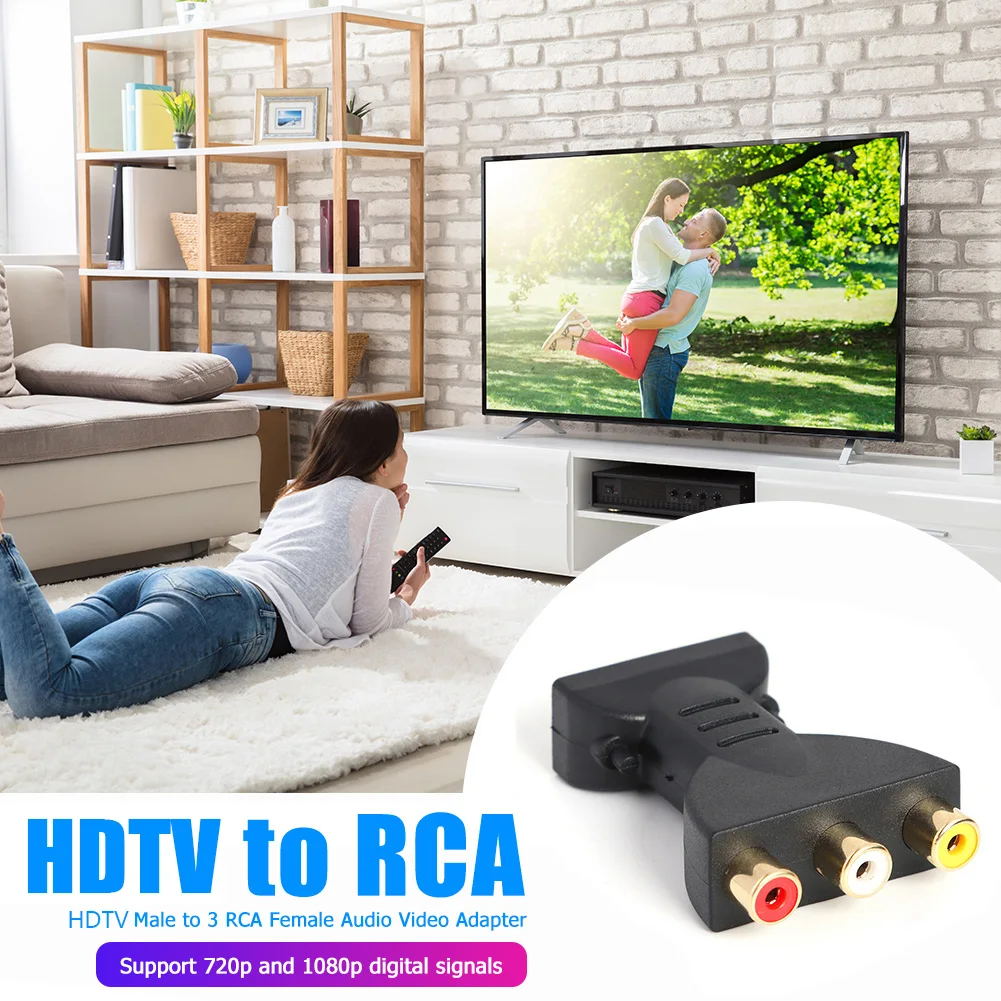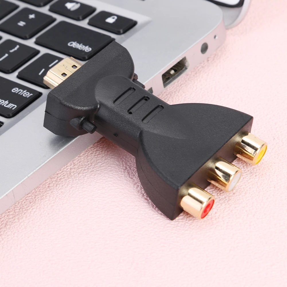 Especificación: Tipo: Adaptador de audio y vídeo compatible con HDMI macho a 3 RCA hembra Material: ABS Tamaño: aproximadamente 70*40*15mm/2,75*1,57*0,59''