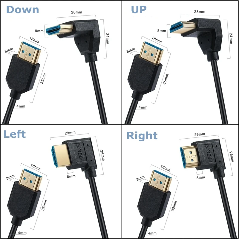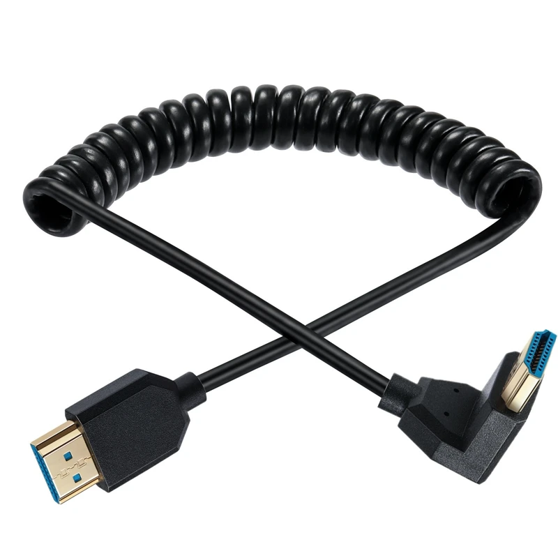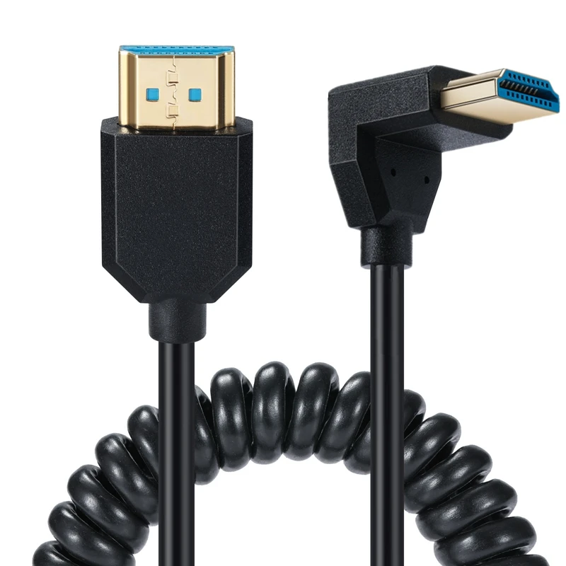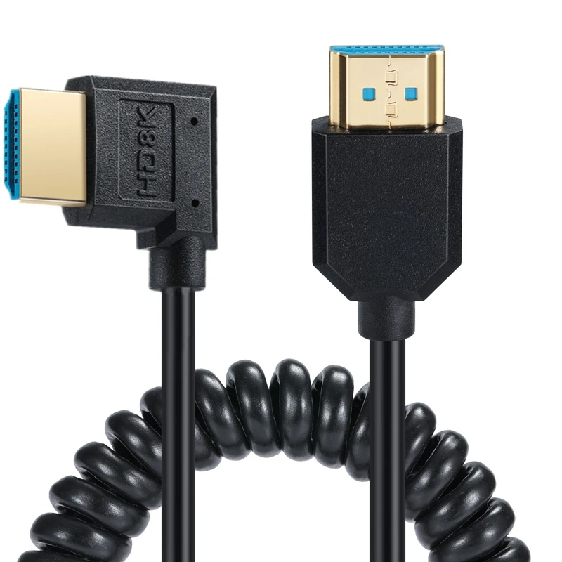 Comprar HDMI en ángulo de 90 grados: compatible con cables en espiral que soporta 48 Gbps 8K60 4K120 144 Hz, para cámaras, cámaras, PC, etc., 1,2 m