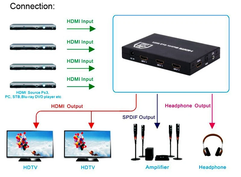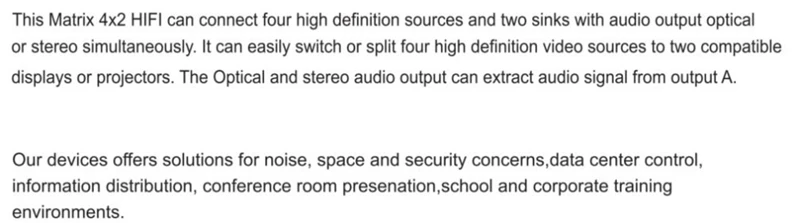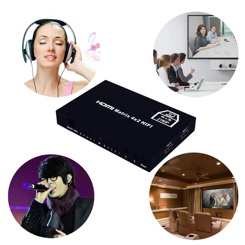 Comprar HDMI Matrix 4x2 HDMI Splitter 3D 4K 2160P HIFI 2x2 Matrix Audio Video Switch Converter para PS4 PS5 DVD Laptop PC a 2 TV Monitor