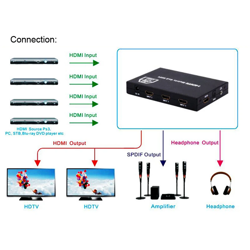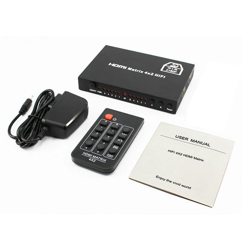 Comprar HDMI Matrix 4x2 HDMI Splitter 3D 4K 2160P HIFI 2x2 Matrix Audio Video Switch Converter para PS4 PS5 DVD Laptop PC a 2 TV Monitor