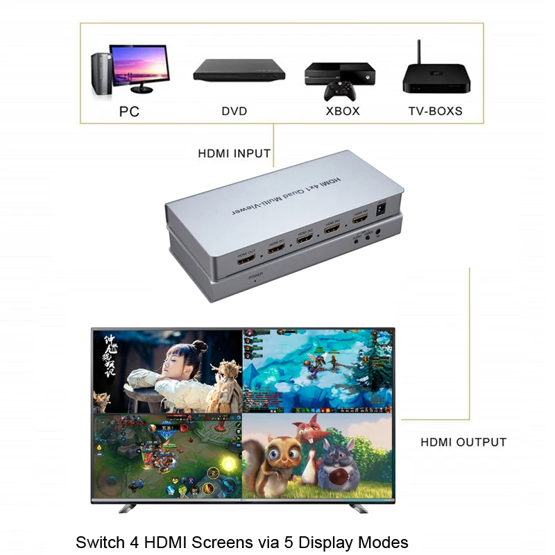 Comprar HDMI Quad Multi-viewer 4x1 HDMI Quad Screen Segmentation Splitter 4 en 1 Out Multiviewer Seamless Switch Multi Viewer para PC TV