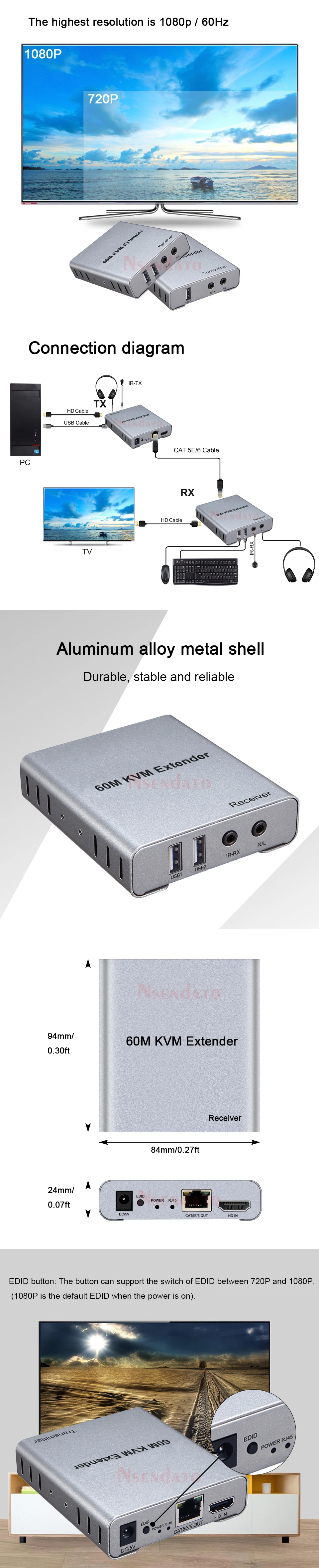 Comprar HDMI USB KVM extensor 60m por Cable cat5/6 1080p 60Hz HDMI transmisor receptor KVM interruptor con Audio IR Control ratón teclado