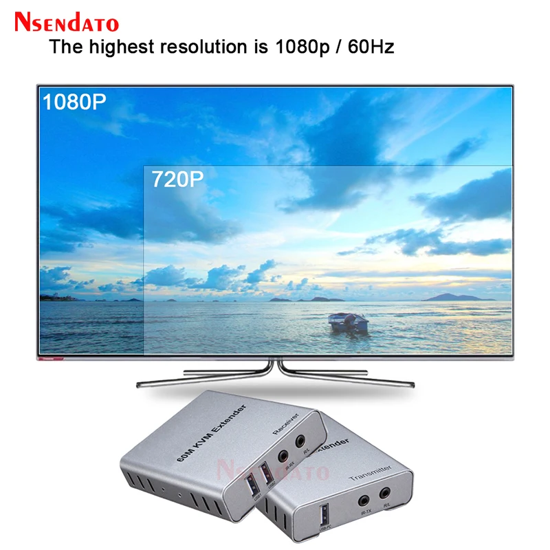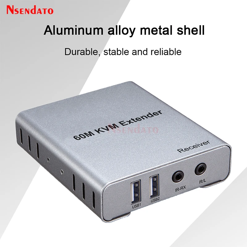 HD USB KVM extensor 60m por cat5/6 Cable 1080p 60Hz HD transmisor receptor KVM interruptor con Audio IR Control ratón y teclado puerto