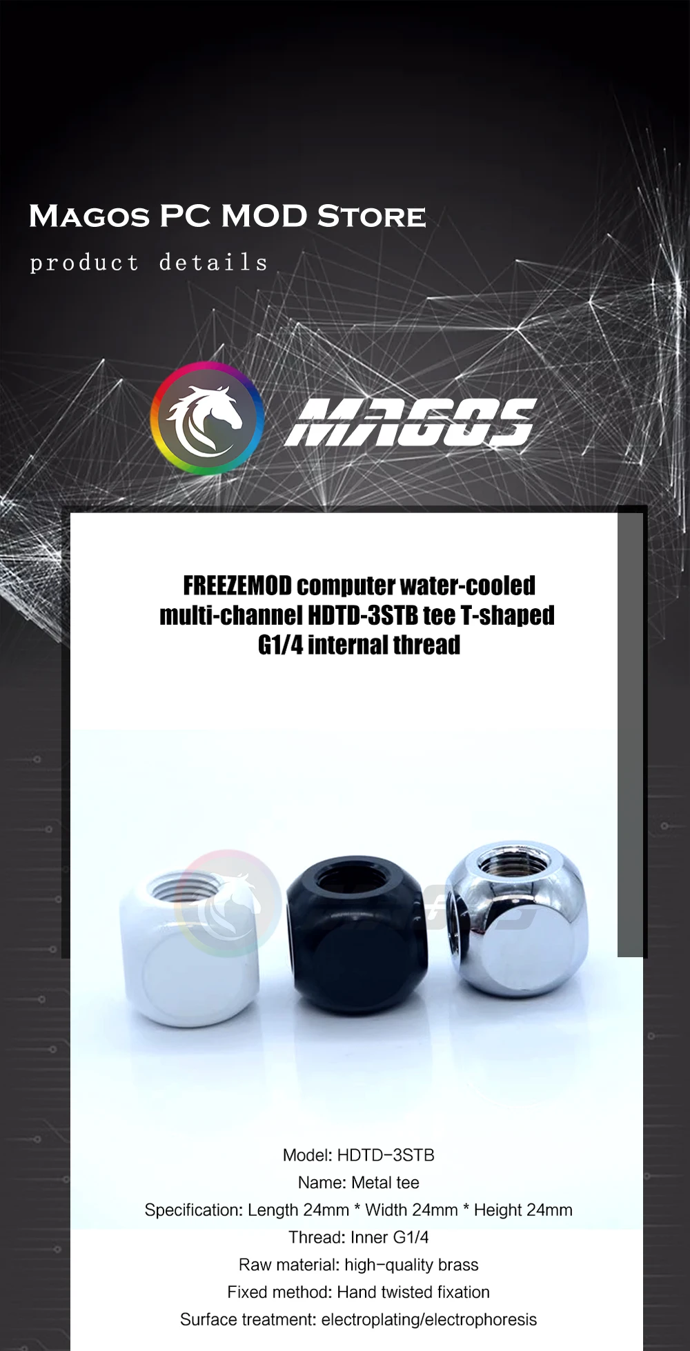 HDTD-3STB Accesorio de bola en forma de T en forma de T con forma de cubo multicanal, rosca interior G1/4 3X, plateado/negro/blanco,