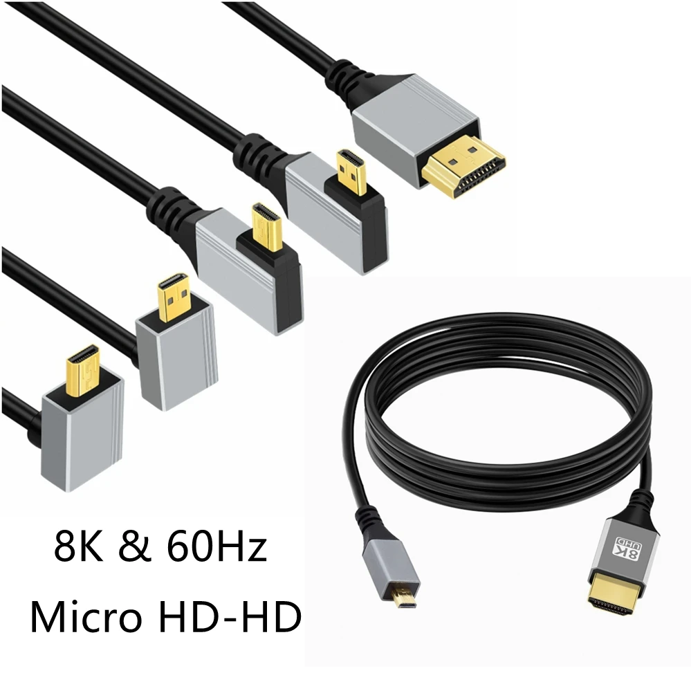 Comprar HDTV a Micro HDTV 8K HD 2,1, Compatible con Micro HDMI, cámara de TV para ordenador, Cable de conexión de codo de transmisión de datos DSLR