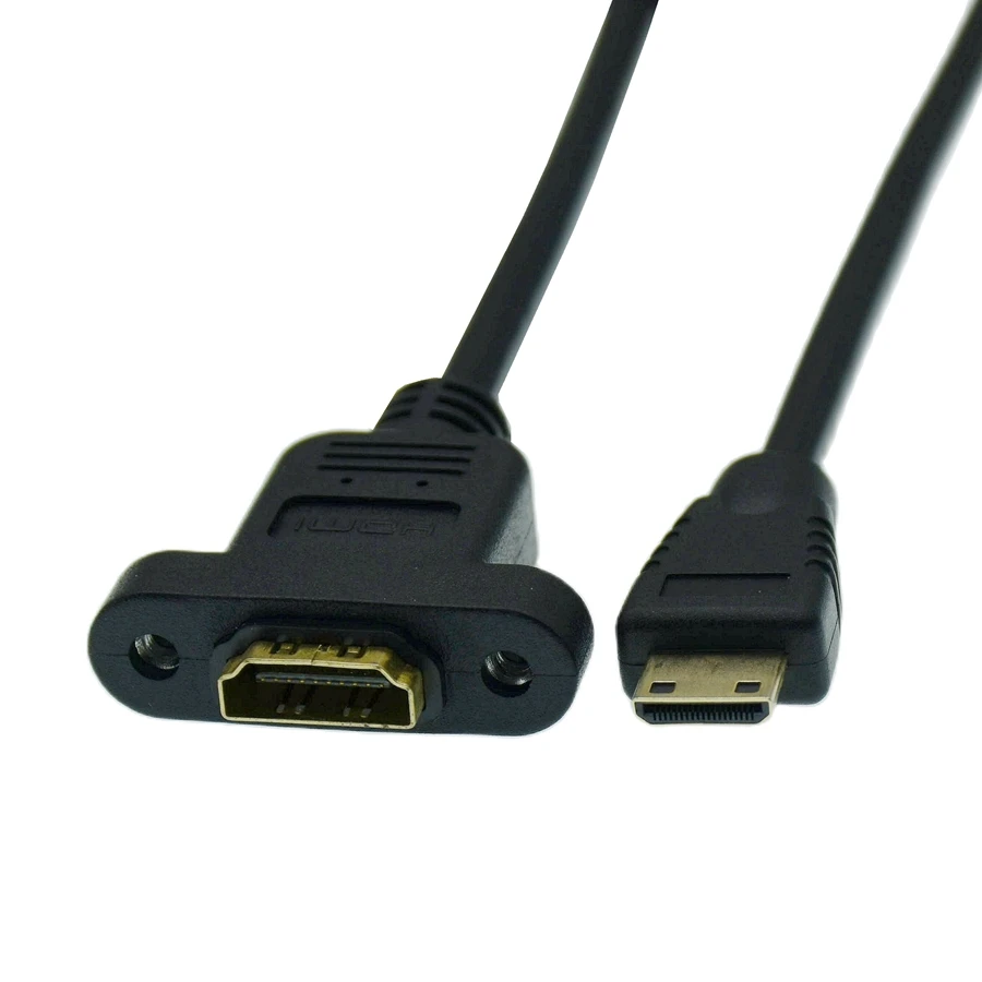 HD Micro HDMI compatible macho a hembra compatible con HDMI con orificio de tornillo oreja puede fijar el cable del panel A hembra a D cable macho