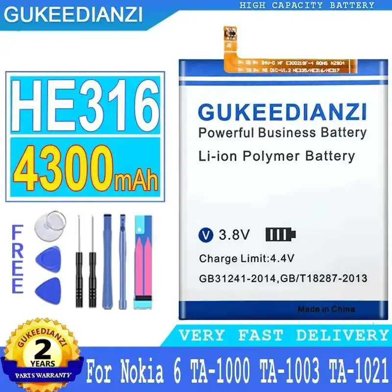 Comprar HE316 para Nokia 6 nokia6 N6 TA-1000 TA-1003 TA-1021 TA-1025 TA-1033 TA-1039 batería de teléfono móvil duradera de 4300mAh
