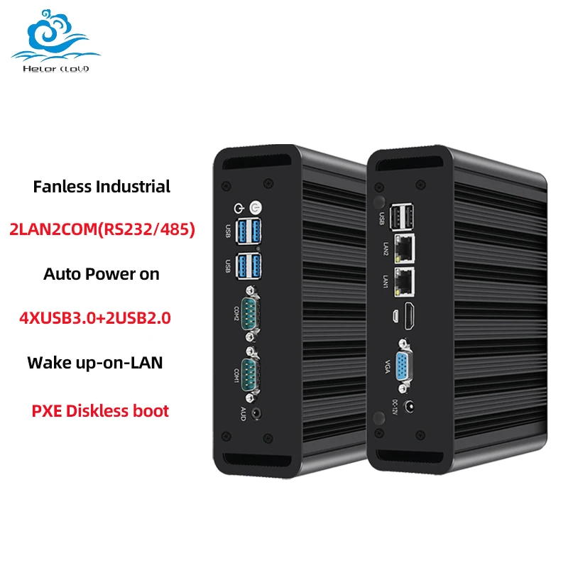 Comprar Helorpc Mini PC Barebone Kit compatible con doble Gigabit Ethernet con 2xRS232/485 4xUSB3.0 computadora compacta para Win10 industrial lista