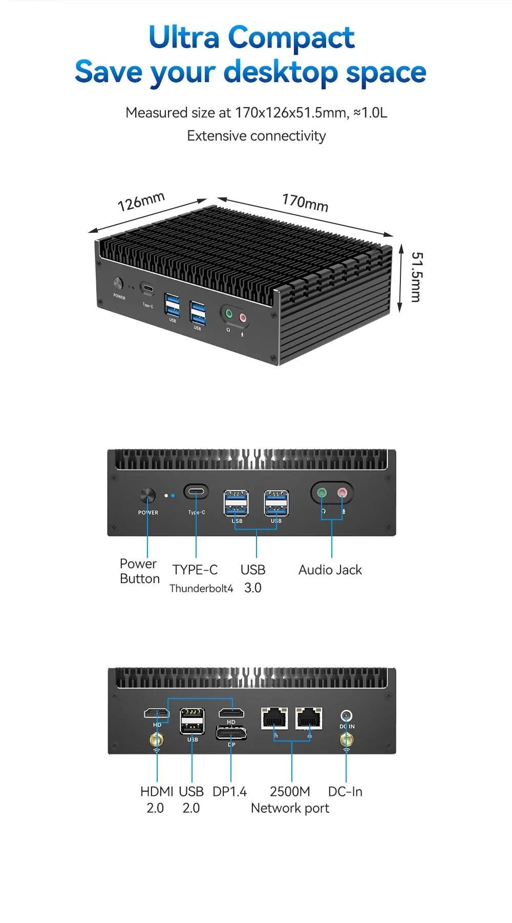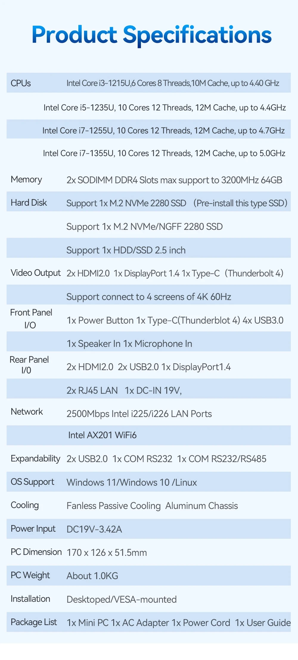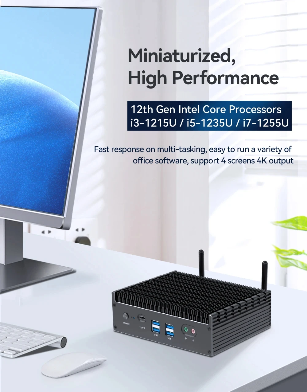 Helorpc-Mini PC psense Inter Gen12, i3/i5/i7, DDR4 Dual, compatible con Windows 10/11, LINUX, WIFI, BT4.2, 4XUSB3.0, 2XUSB2.0, 2xhdmi, tipo C