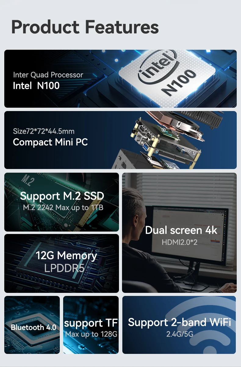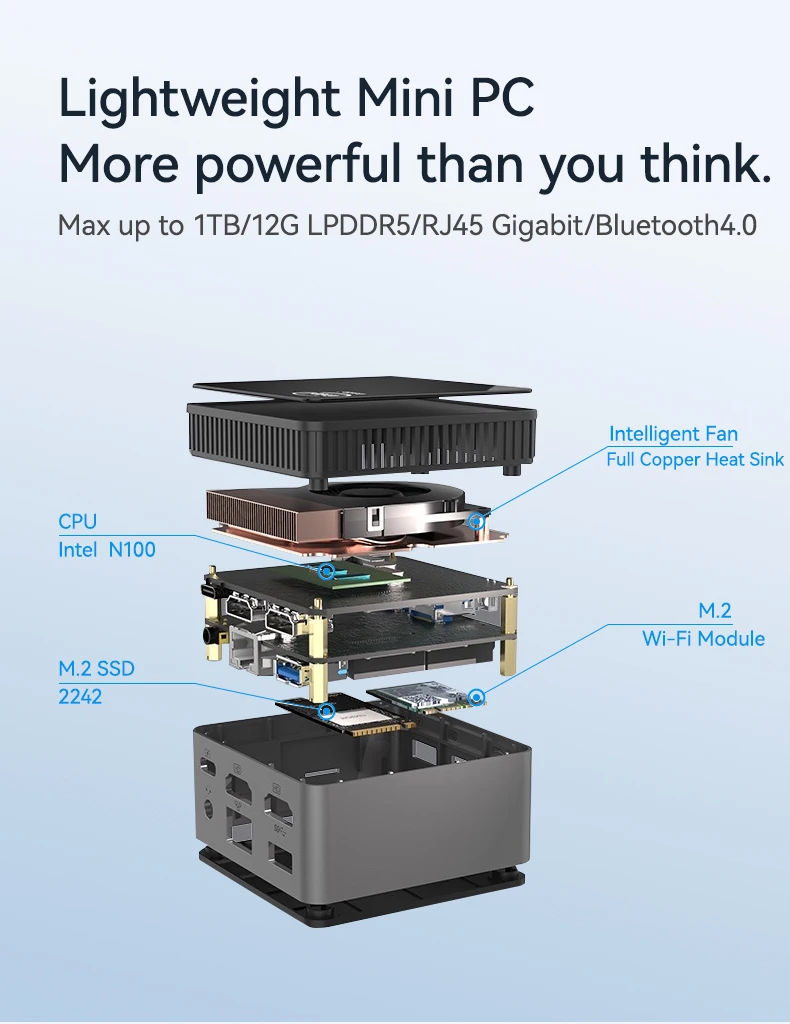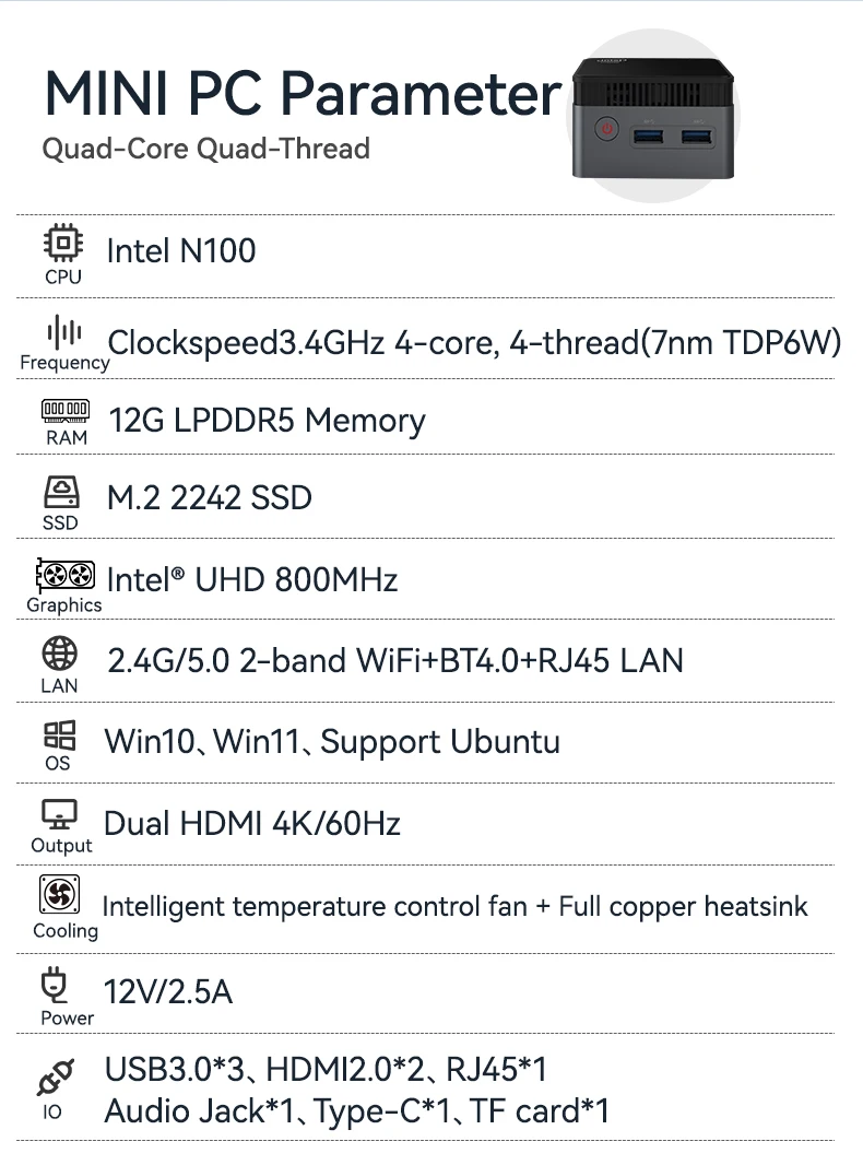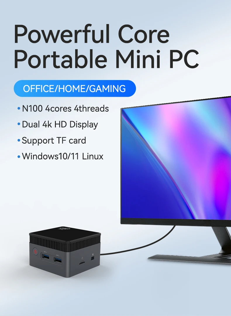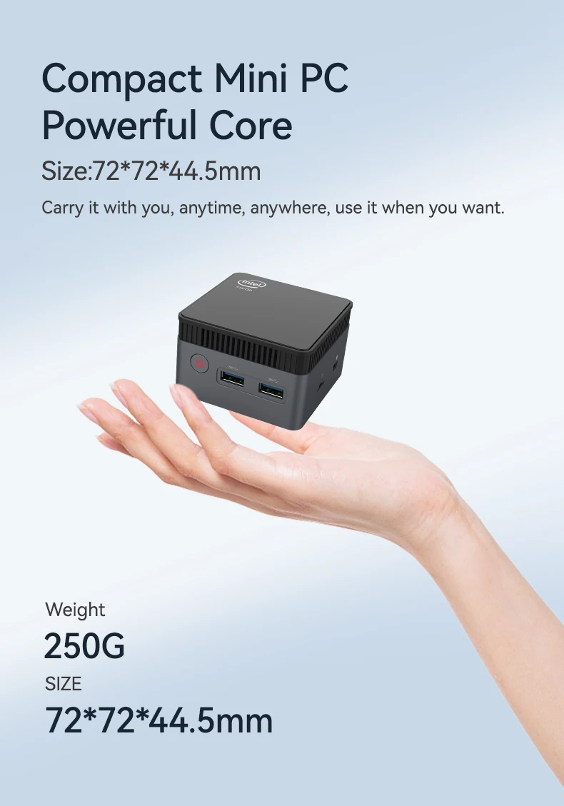 Helorpc Portable Mini PC with Inter N100 Processor 12Gb LPDDR5 M.2 SSD Support WIN10 LINUX 3xUSB3.0 2xHDMI BT4.0 WIFI Pocket pc