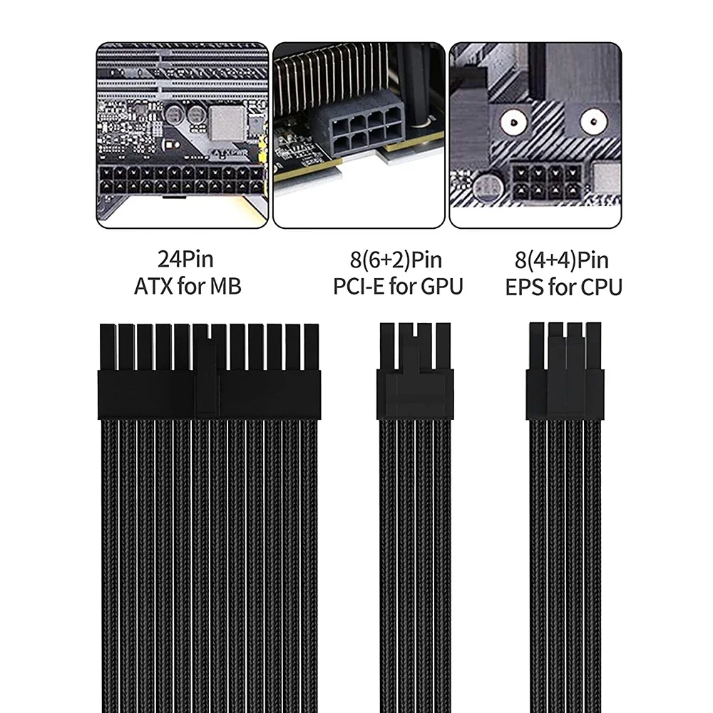 Comprar Hembra a macho 18AWG PSU Cable de alimentación de extensión/Kits de cables 24PIN ATX, 4+4 PIN EPS, Dual 6+2 PIN PCIE